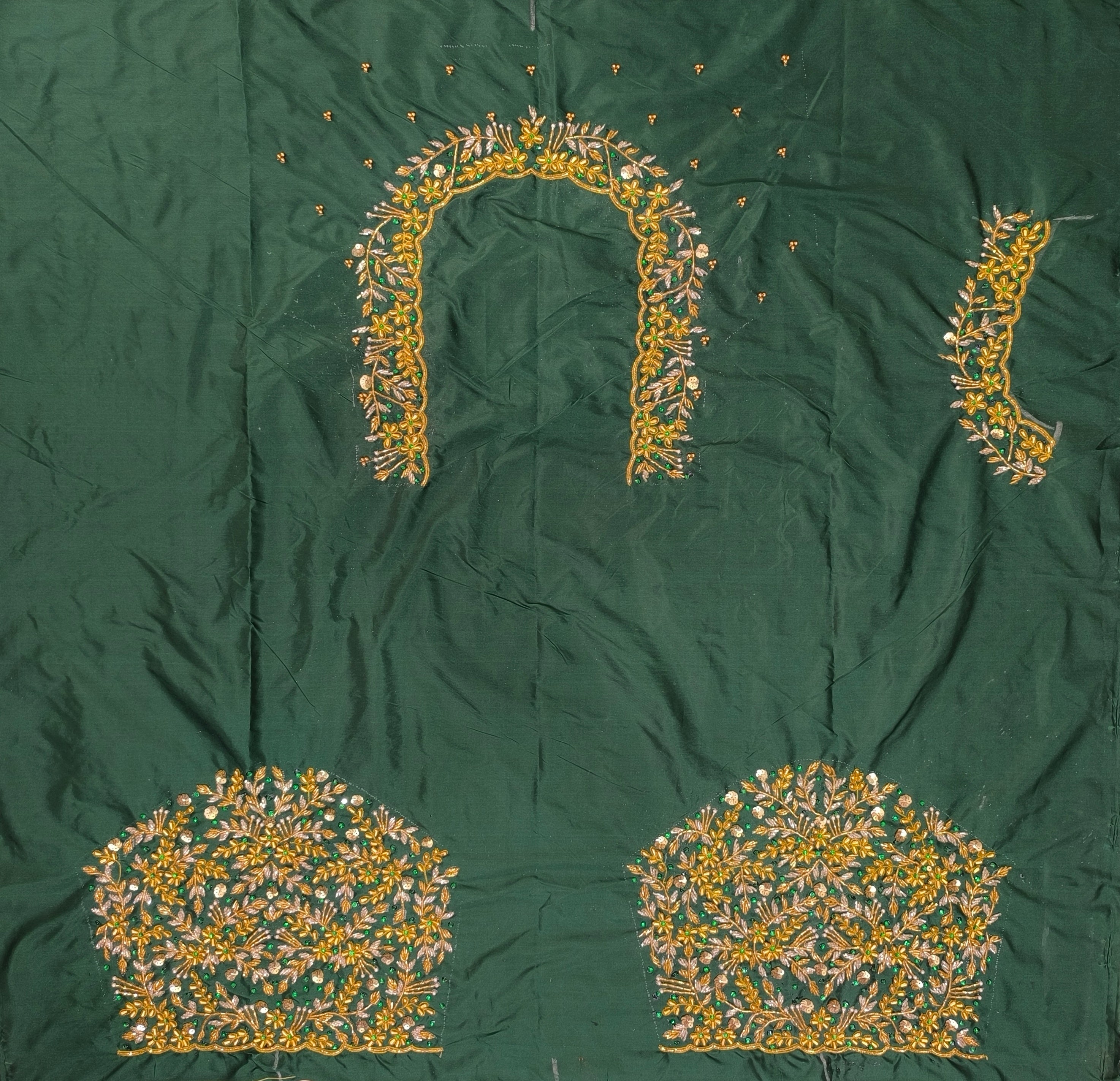 Bottle Green Colour Maggam Work Blouse 1 MTR SILK  COTTON CLOTHBottle Green ColourMaggam Work BlouseNECK DEEP 10...