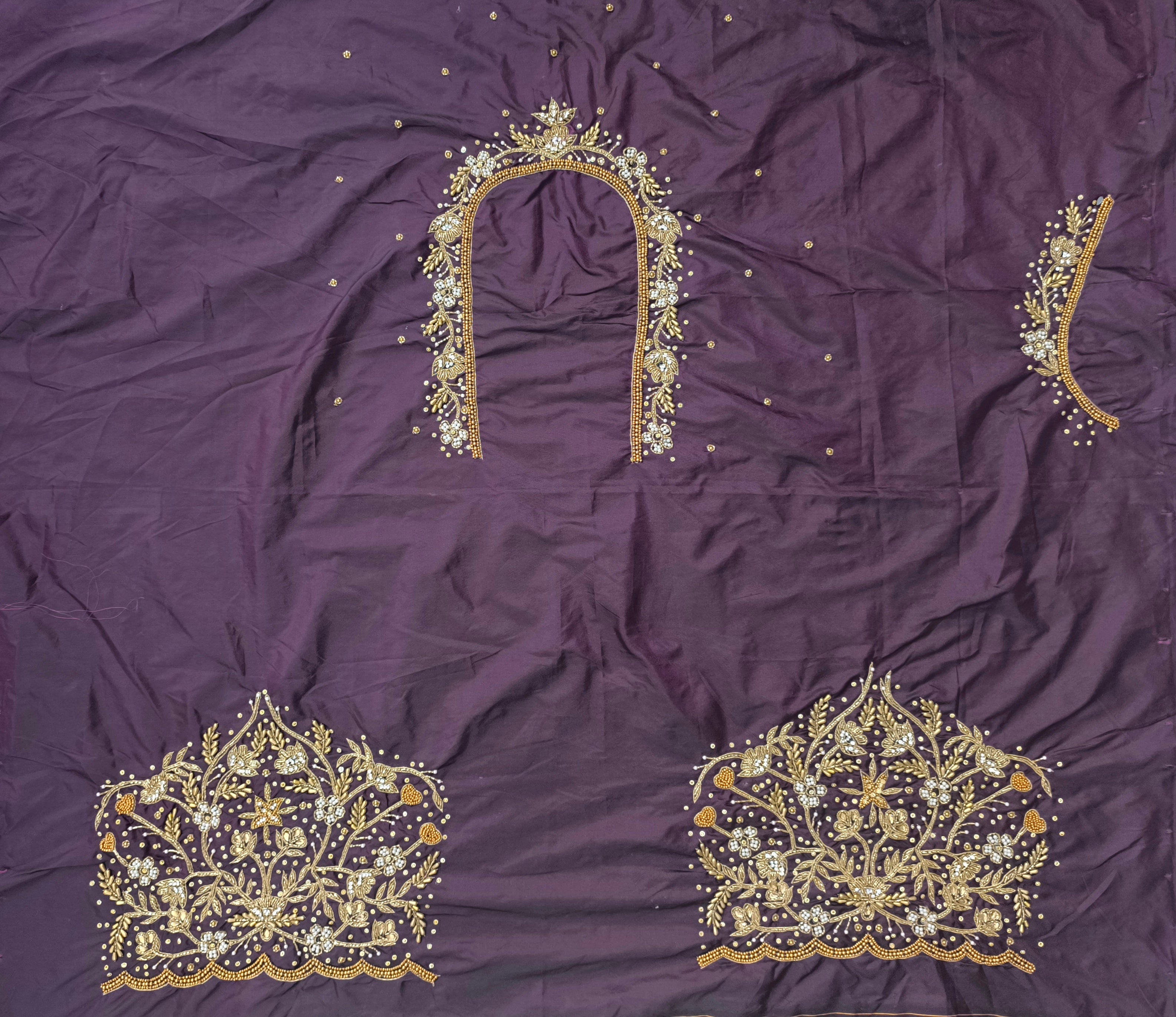 Wine Colour Maggam Work Blouse 1 MTR SILK  COTTON CLOTHMaggam Work BlouseNECK DEEP 10 TO 11 INCHES...