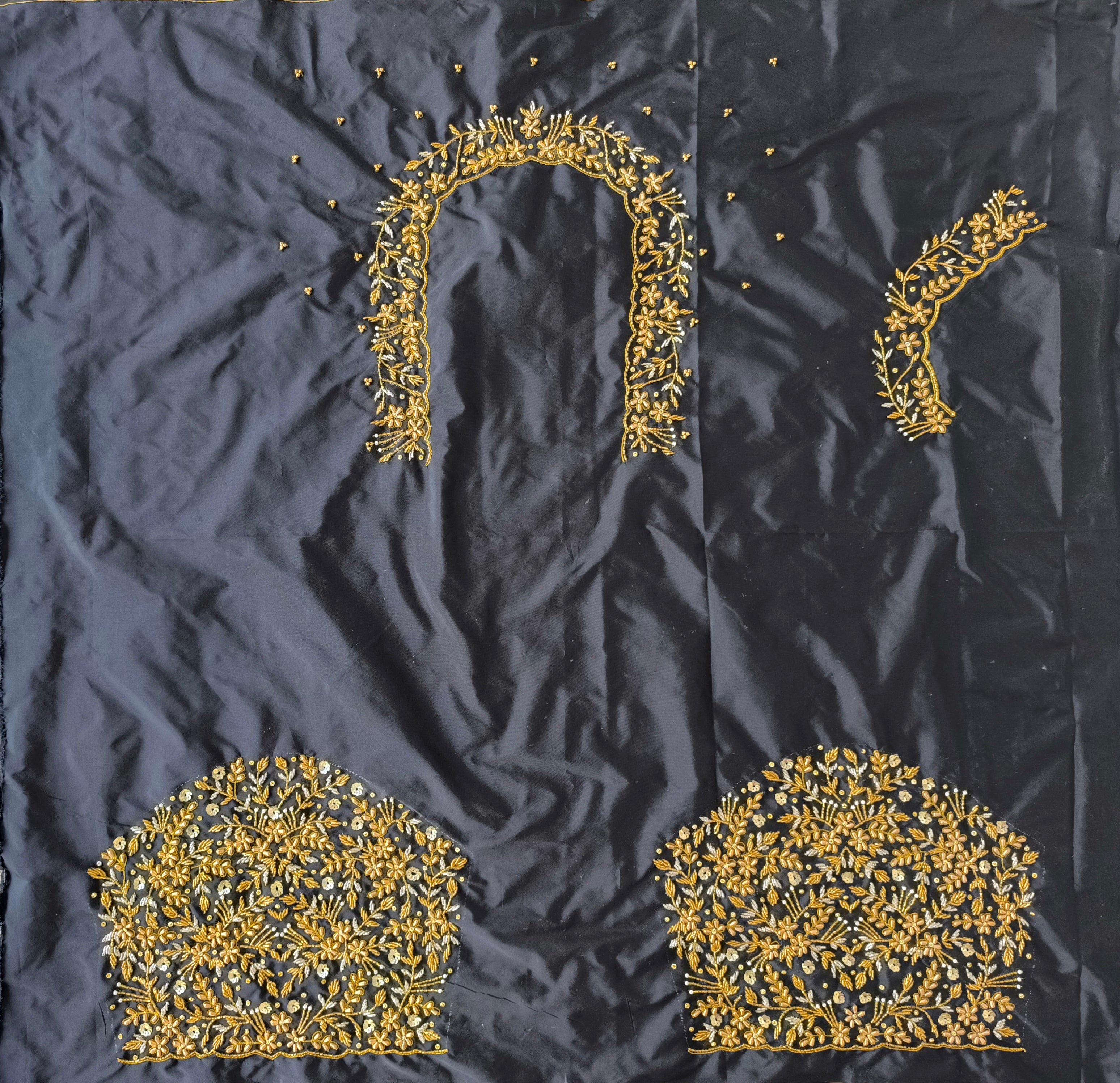 Black Colour Maggam Work Blouse 1 MTR SILK  COTTON CLOTH Black ColourMaggam Work BlouseNECK DEEP 10 TO...