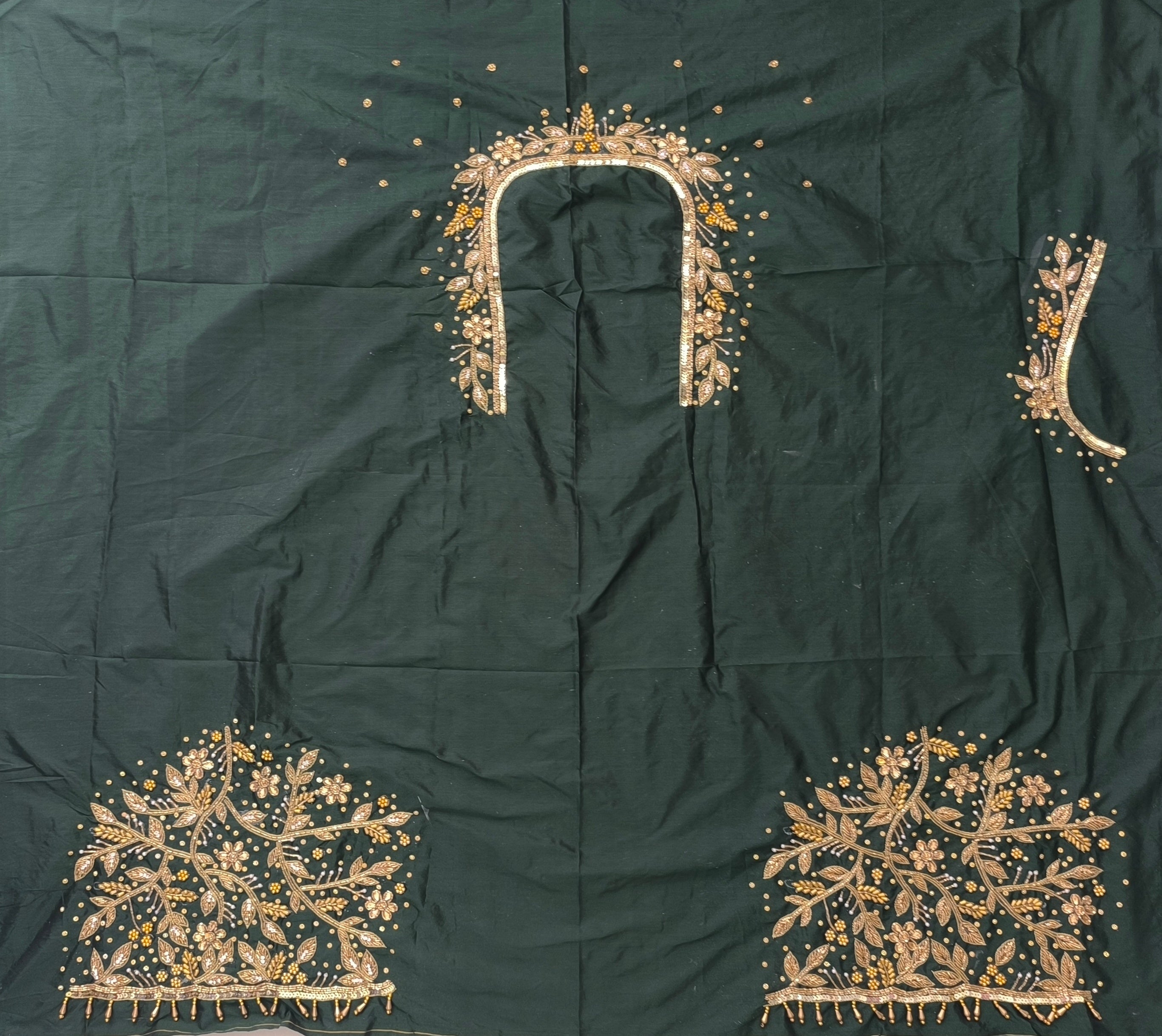Bottle Green Colour Maggam Work Blouse 1 MTR SILK  COTTON CLOTH Bottle Green ColourMaggam Work BlouseNECK DEEP...