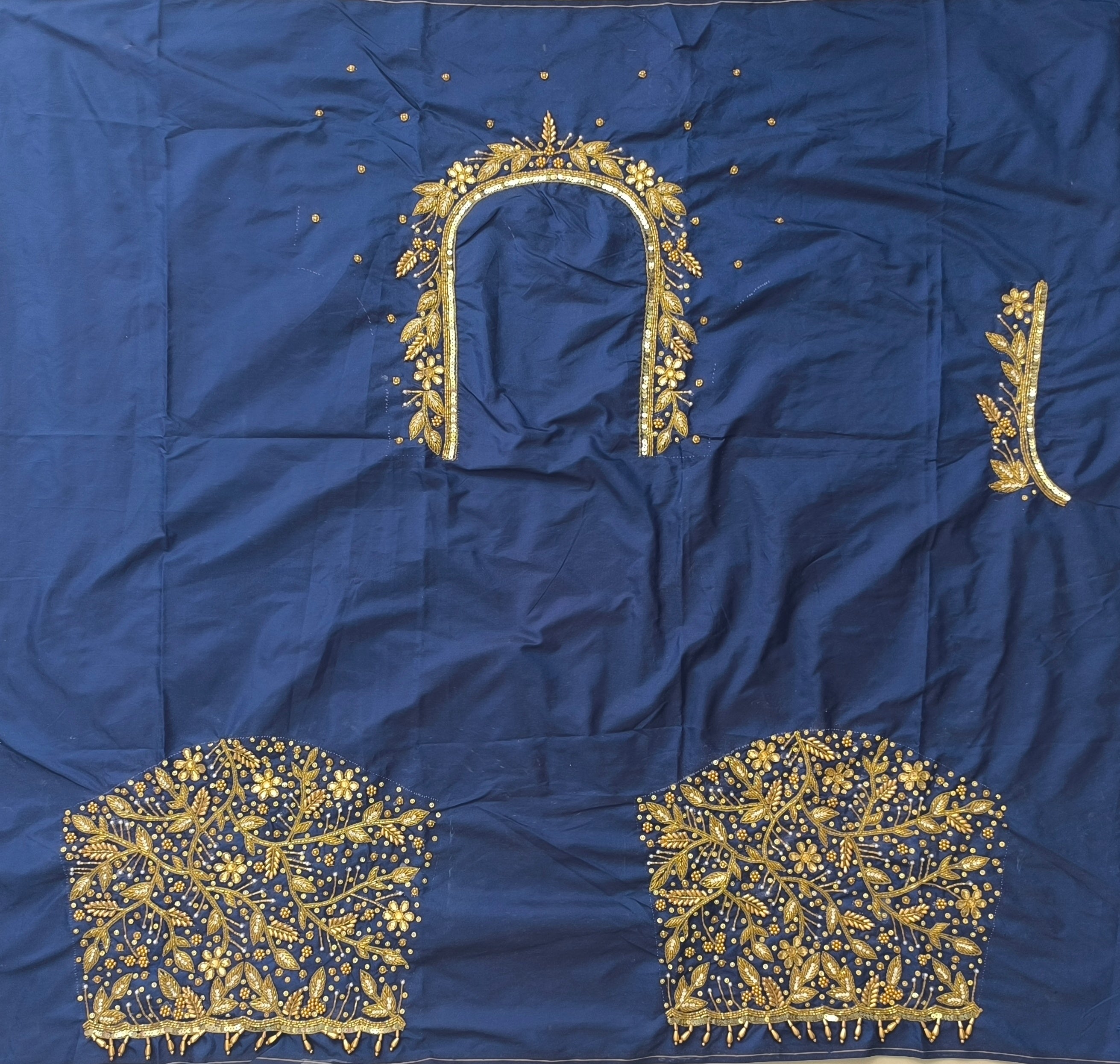 Navy Blue Colour Maggam Work Blouse 1 MTR SILK  COTTON CLOTH Navy Blue ColourMaggam Work BlouseNECK DEEP...