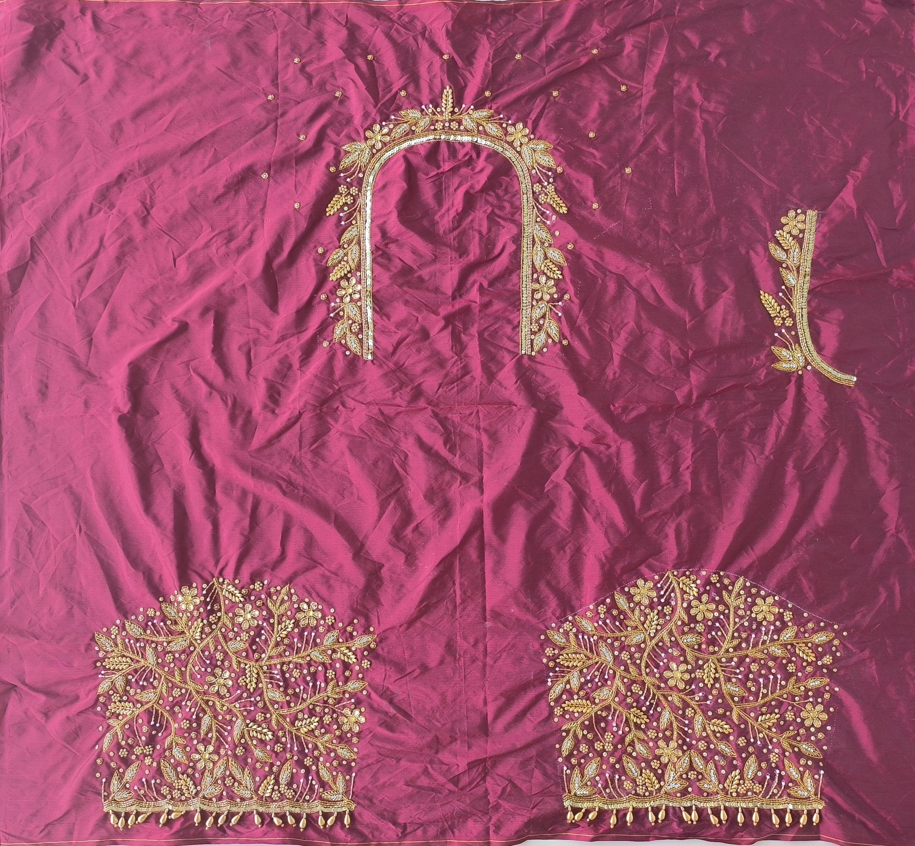 Maroon Colour Maggam Work Blouse 1 MTR SILK  COTTON CLOTH Maroon ColourMaggam Work BlouseNECK DEEP 10 TO...