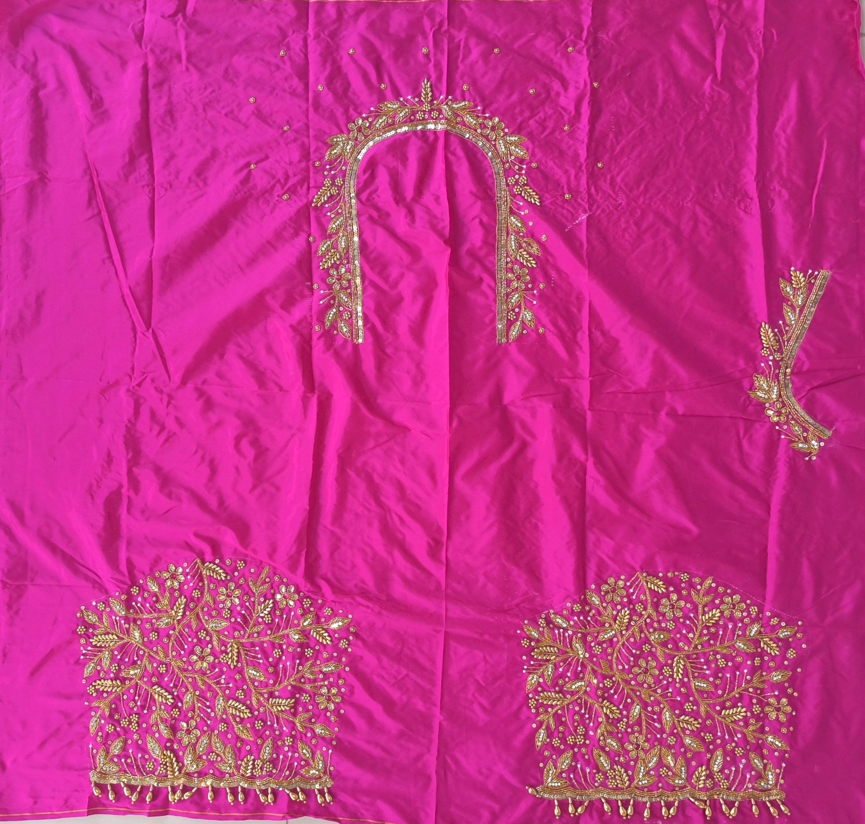 Pink Colour Maggam Work Blouse 1 MTR SILK  COTTON CLOTH Pink ColourMaggam Work BlouseNECK DEEP 10 TO...