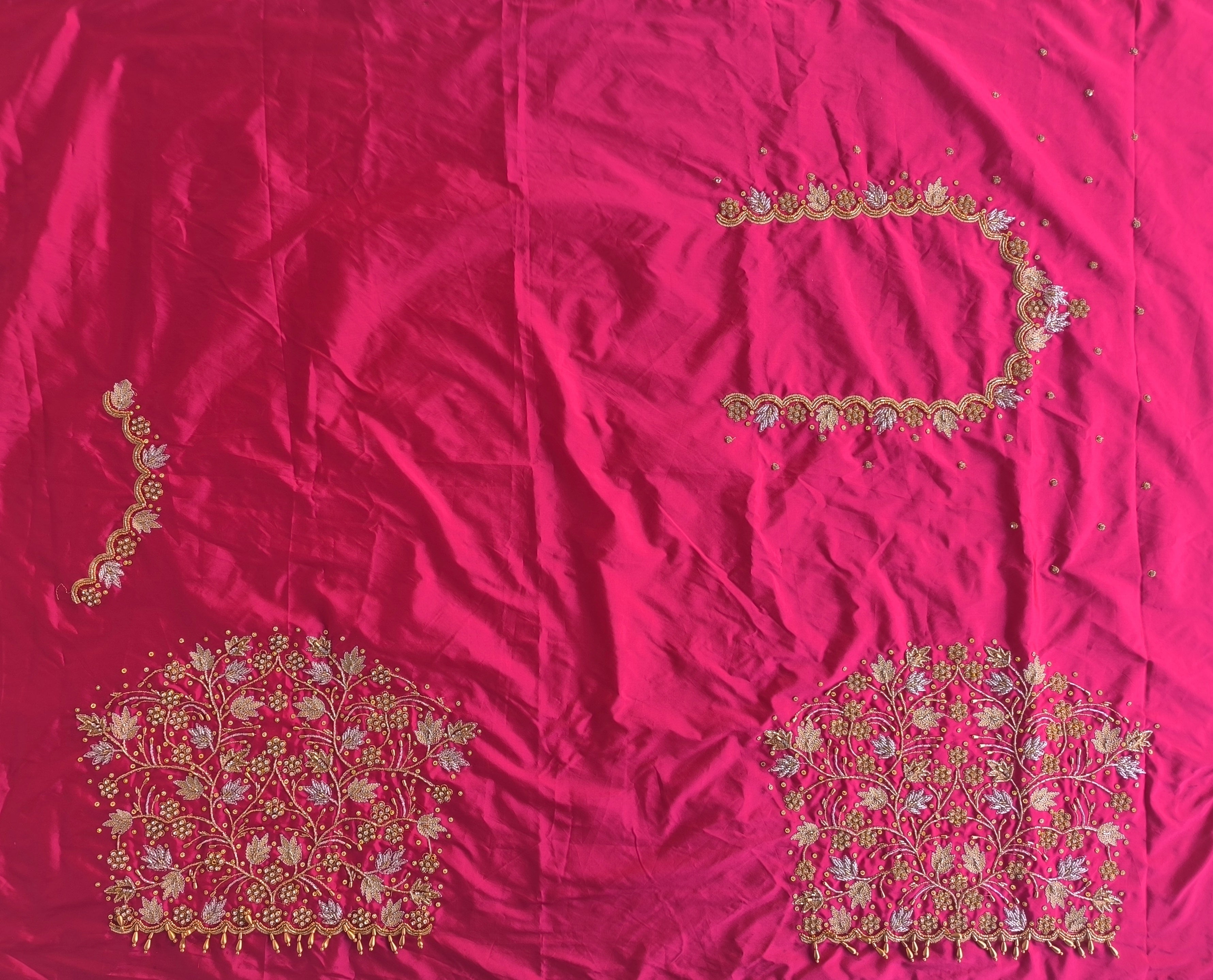 Tomato Pink Colour Computer Maggam Work Blouse 1 MTR SILK  COTTON Cloth Tomato Pink ColorComputer Maggam Work...