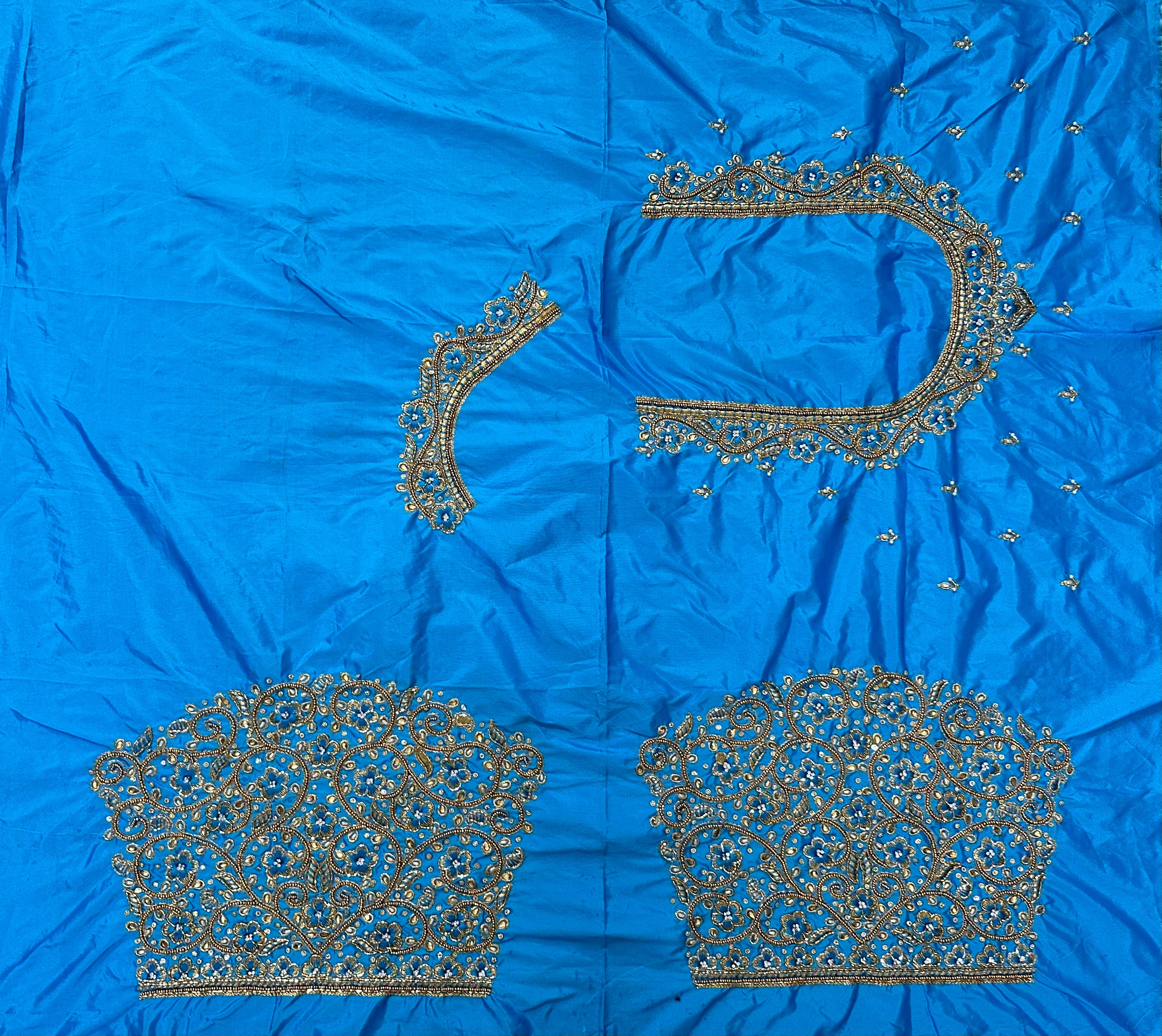Sky Blue Colour Maggam Work Blouse 1 MTR SILK  COTTON CLOTHMaggam Work BlouseNECK DEEP 10 TO 11...