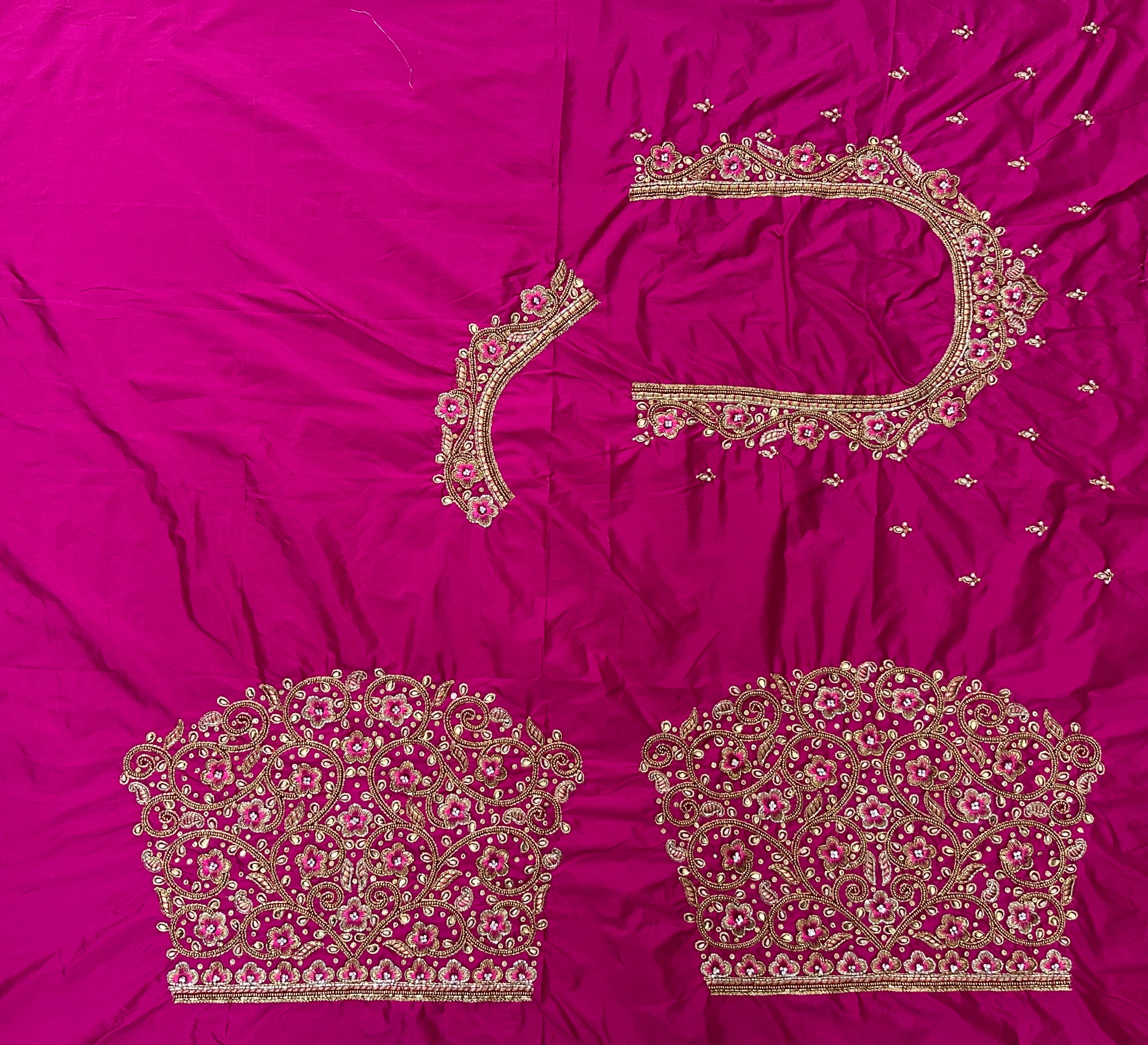 Pink Colour Maggam Work Blouse 1 MTR SILK  COTTON CLOTHComputer Maggam Work BlouseNECK DEEP 10 TO 11...