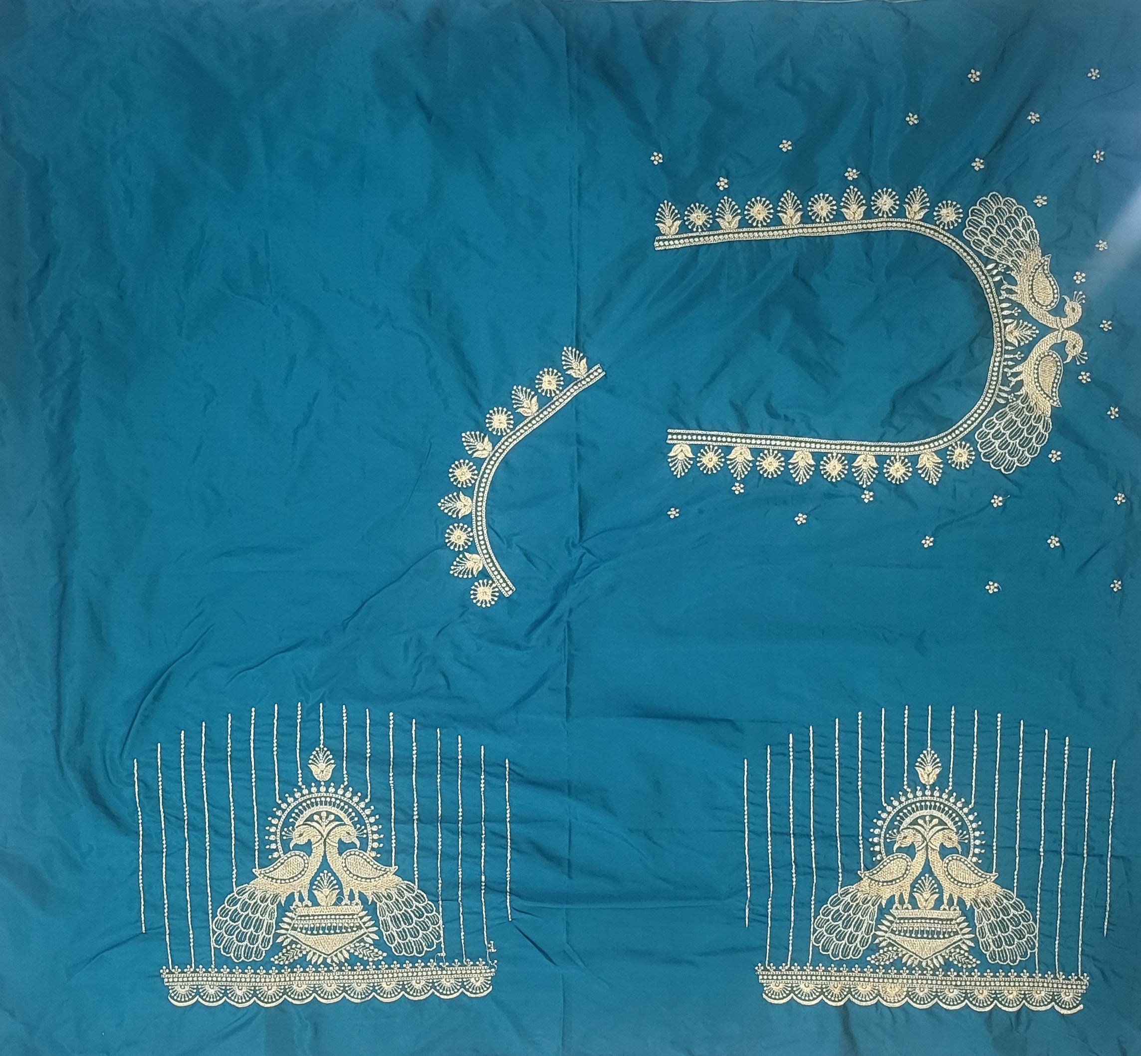Rama Green Colour Computer Work Blouse 1 MTR SILK  COTTON CLOTHRama Green ColorCOMPUTER EMBROIDARY WORK BLOUSENECK DEEP...