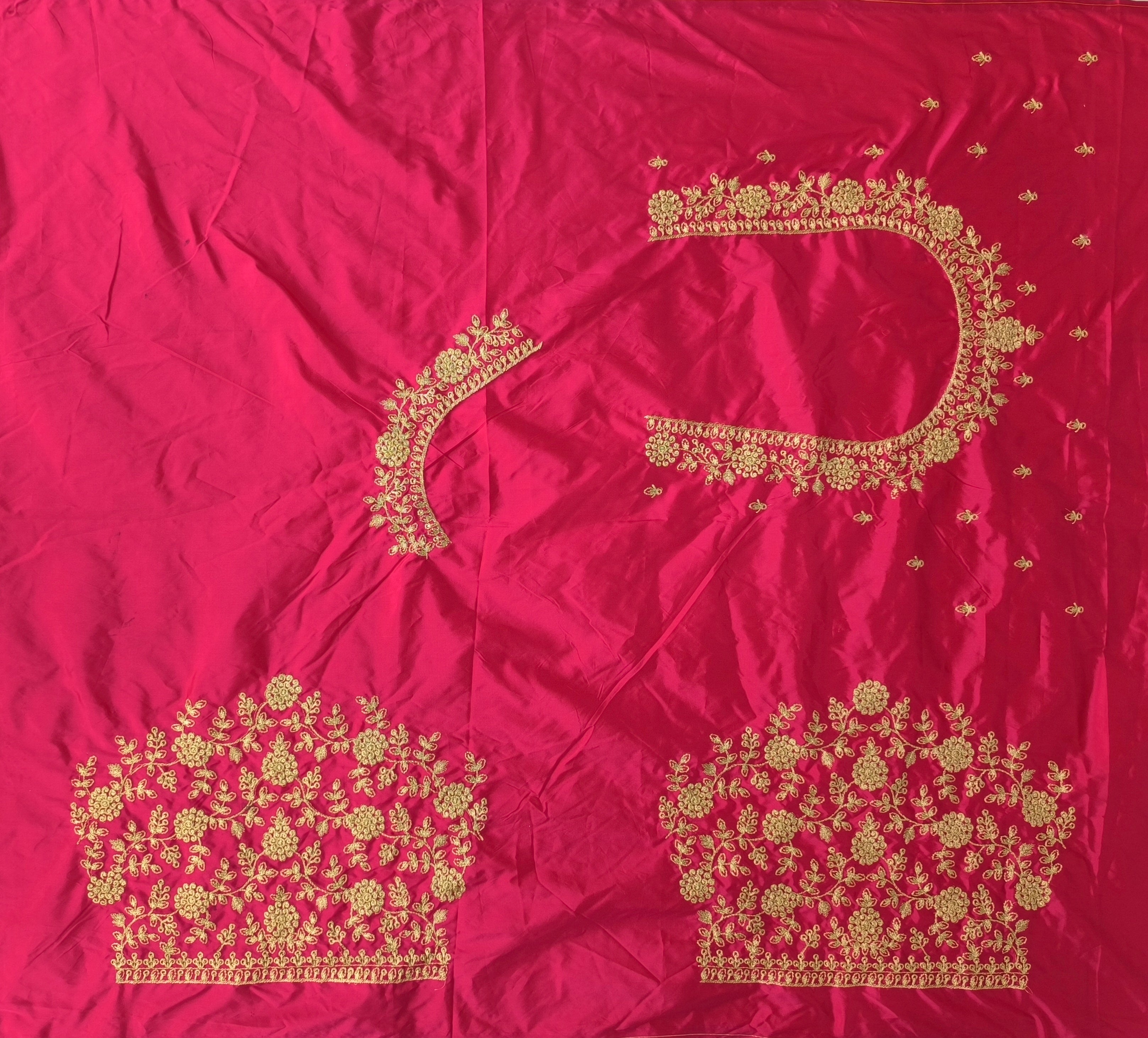 Tomato Pink Colour  Computer Work Blouse 1 MTR SILK  COTTON CLOTHTomato Pink ColorMACHINE EMBROIDARY WORK BLOUSENECK DEEP...
