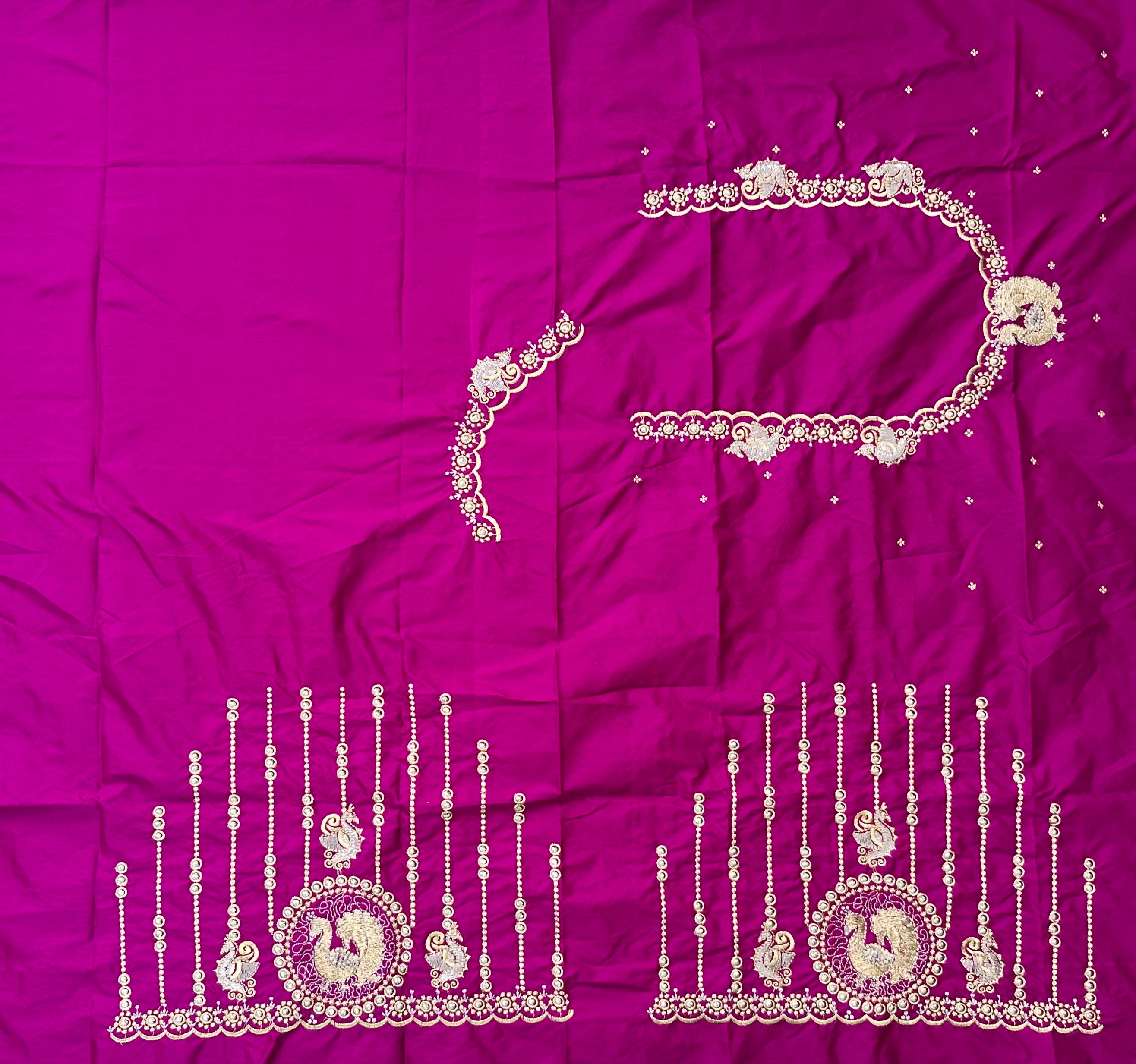 Magenta Pink Colour  Computer Work Blouse 1 MTR SILK  COTTON CLOTHMACHINE EMBROIDARY WORK BLOUSENECK DEEP 10 TO...