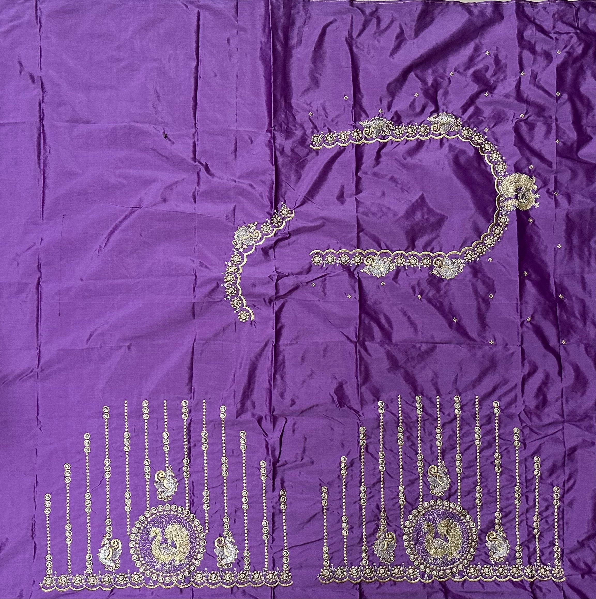 Elevate your ethnic wardrobe with this stunning Purple Colour Computer Work Blouse, adorned with intricate floral patterns and elegant gold threadwork. Perfectly crafted, this blouse features: