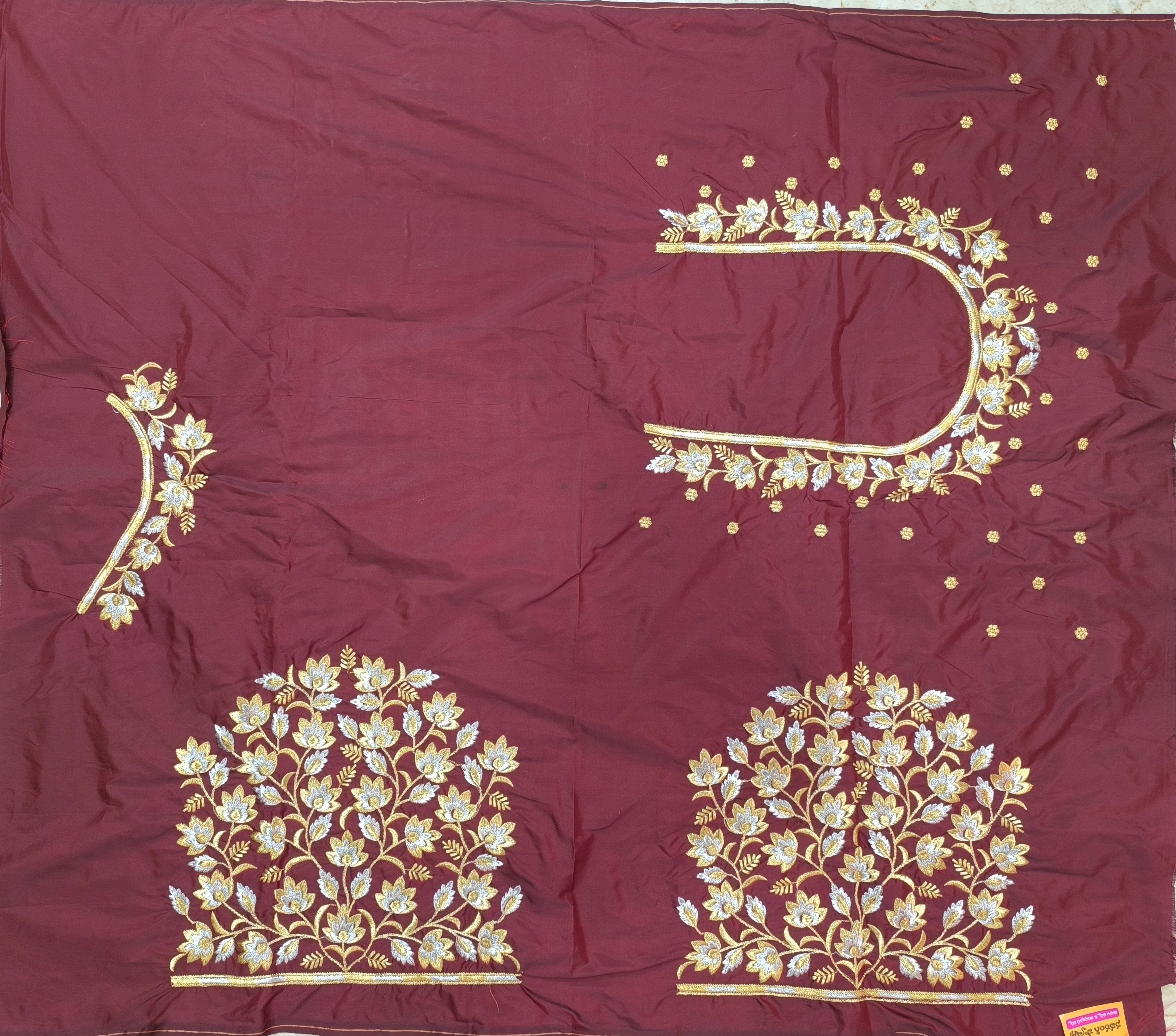 Maroon Colour  Computer Work Blouse 1 MTR SILK COTTON CLOTHMaroon ColorMACHINE EMBROIDARY WORK BLOUSENECK DEEP 10 TO...