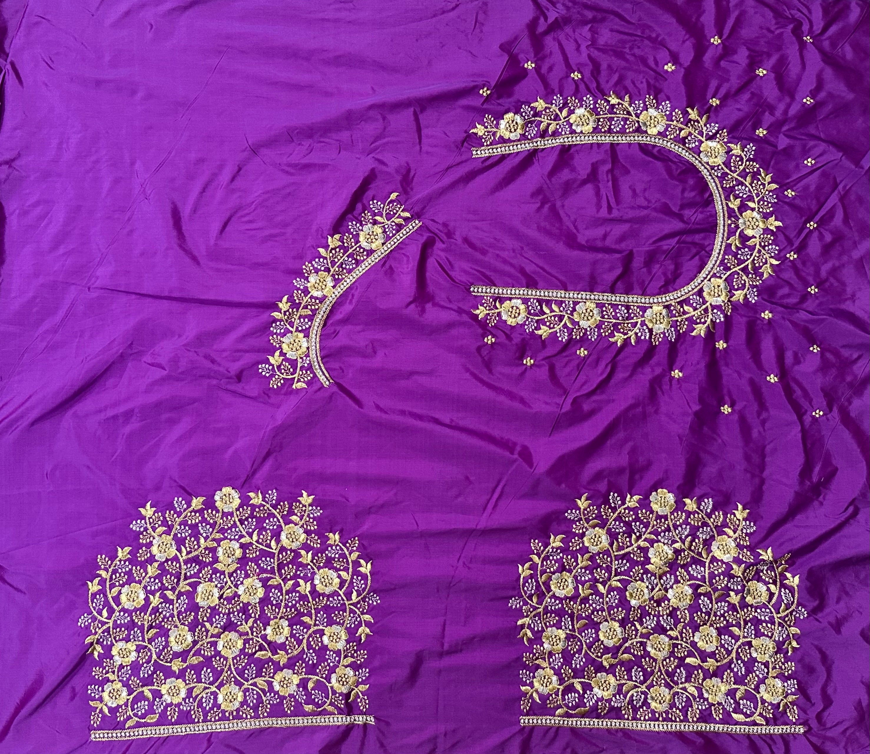 Purple Colour  Computer Work Blouse 1 MTR SILK COTTON CLOTHMACHINE EMBROIDARY WORK BLOUSENECK DEEP 10 TO 11...