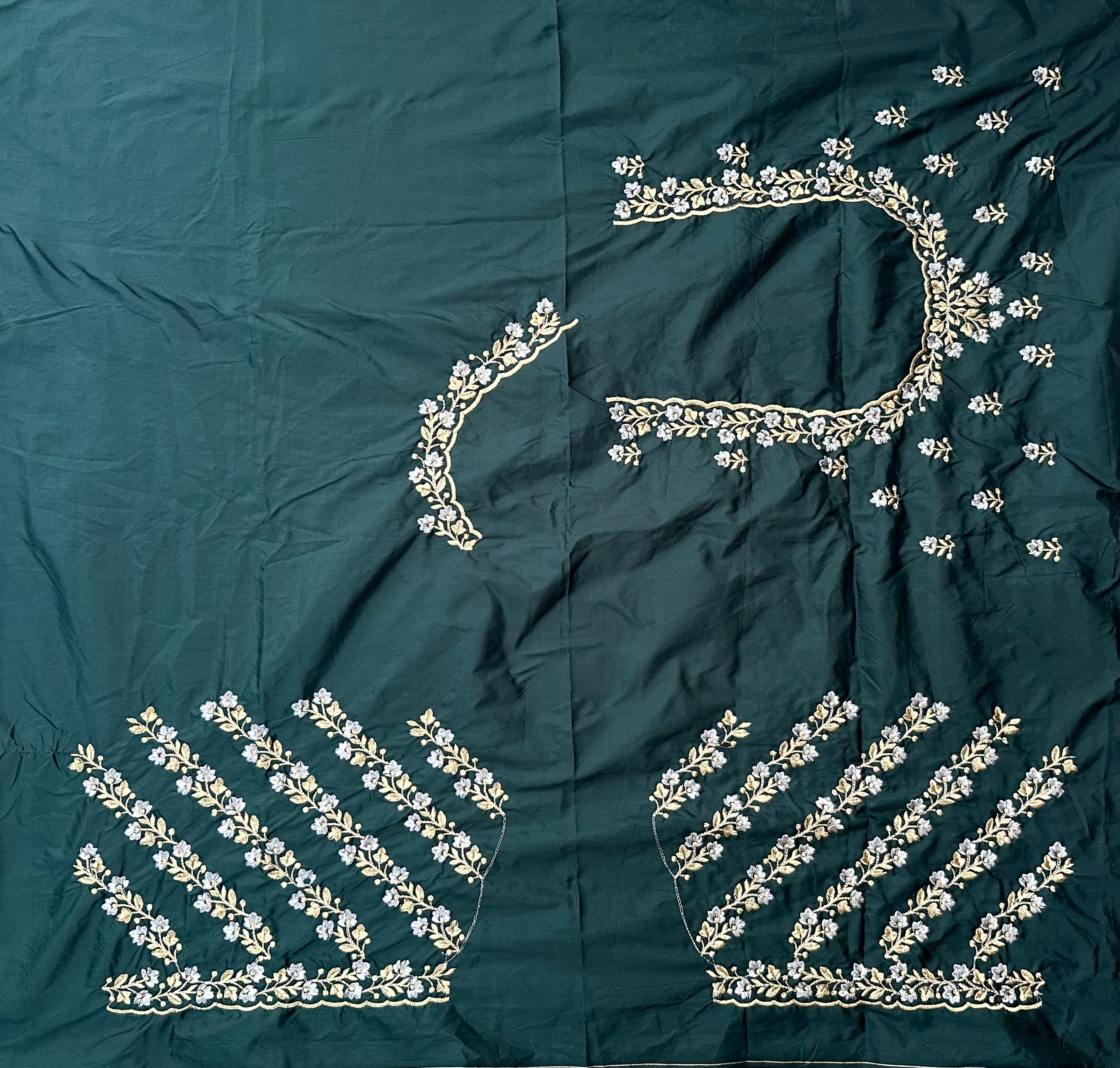 Bottle Green Colour  Computer Work Blouse 1 MTR SILK COTTON CLOTHMACHINE EMBROIDARY WORK BLOUSENECK DEEP 10 TO...