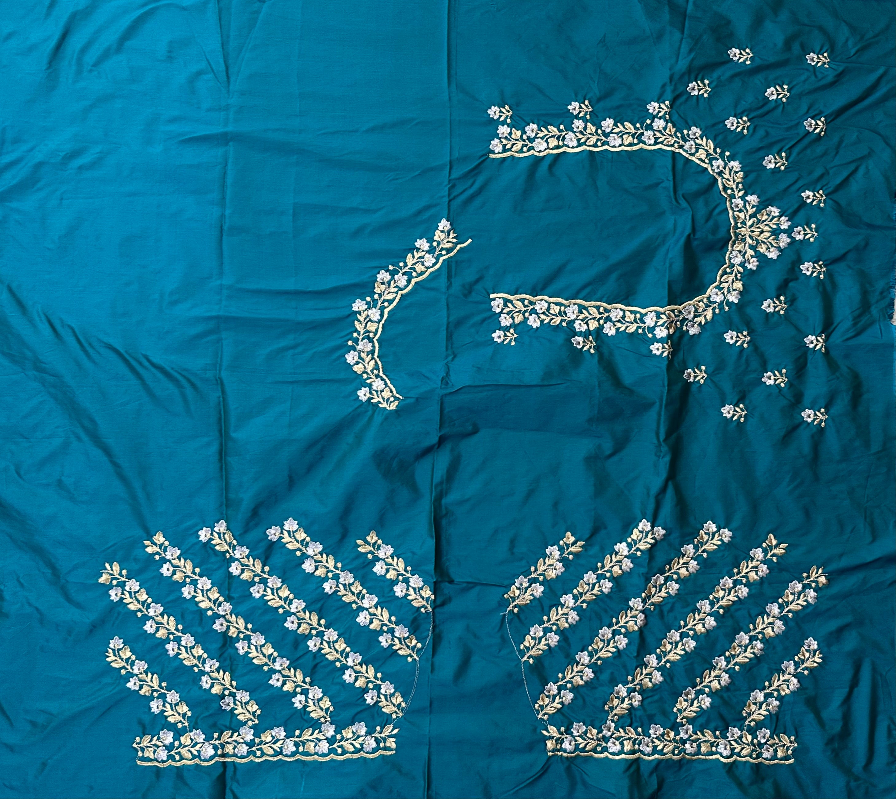 Rama Green Colour  Computer Work Blouse 1 MTR SILK COTTON CLOTHMACHINE EMBROIDARY WORK BLOUSENECK DEEP 10 TO...