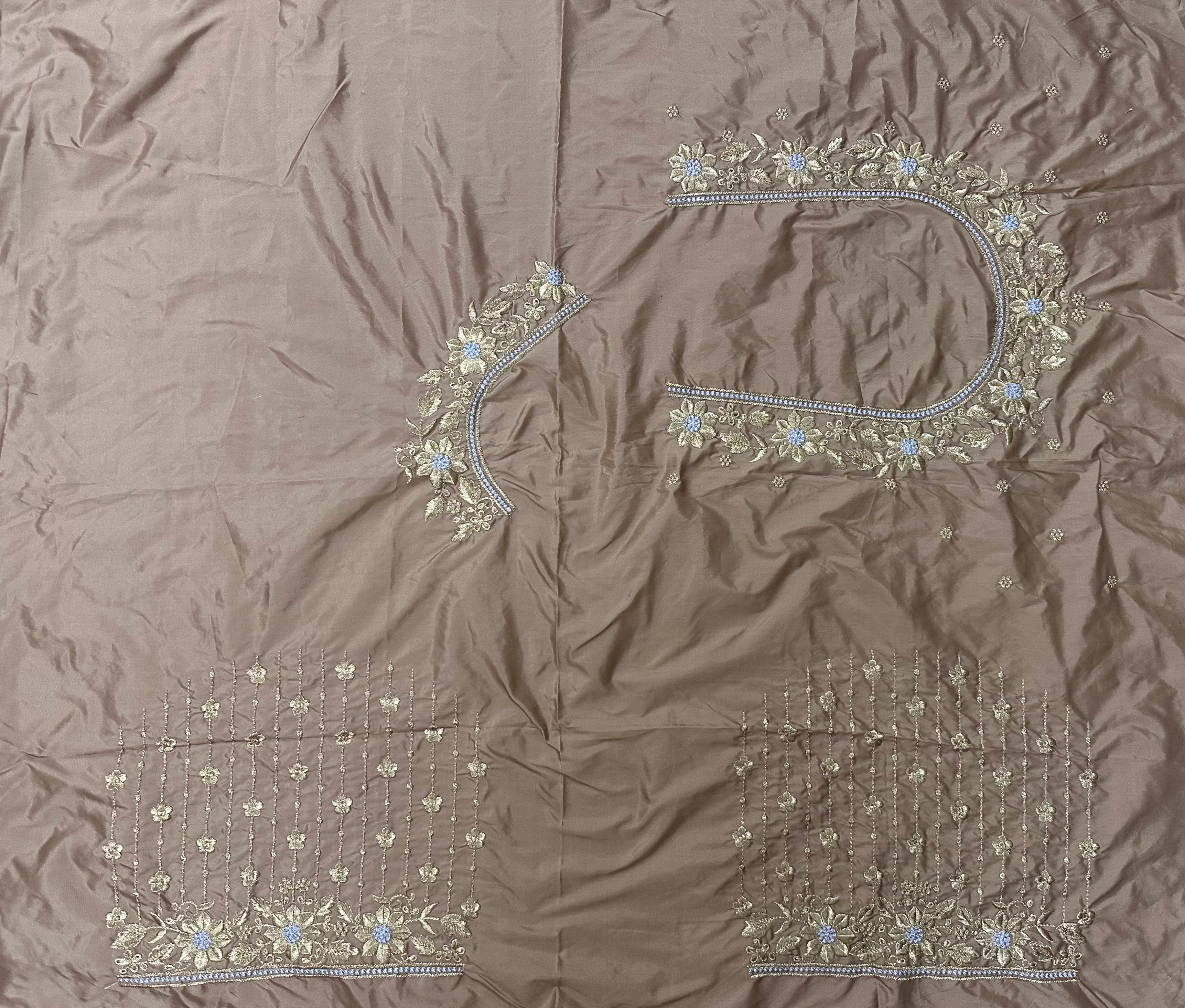 Gold Colour Computer Work Blouse 1 MTR SILK COTTON CLOTHMACHINE EMBROIDARY WORK BLOUSENECK DEEP 10 TO 11...