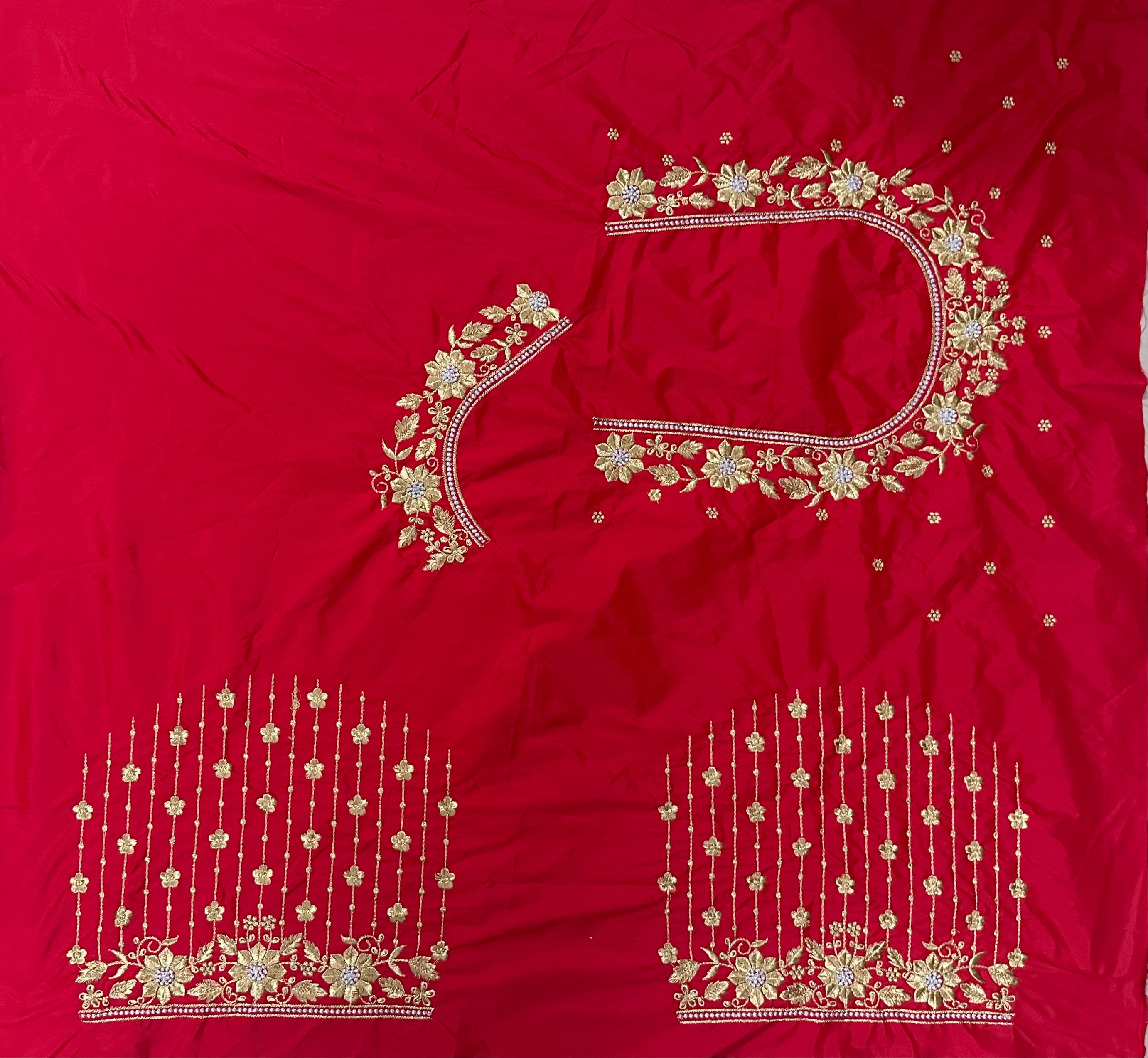 Red Colour Computer Work Blouse 1 MTR SILK COTTON CLOTHMACHINE EMBROIDARY WORK BLOUSENECK DEEP 10 TO 11...