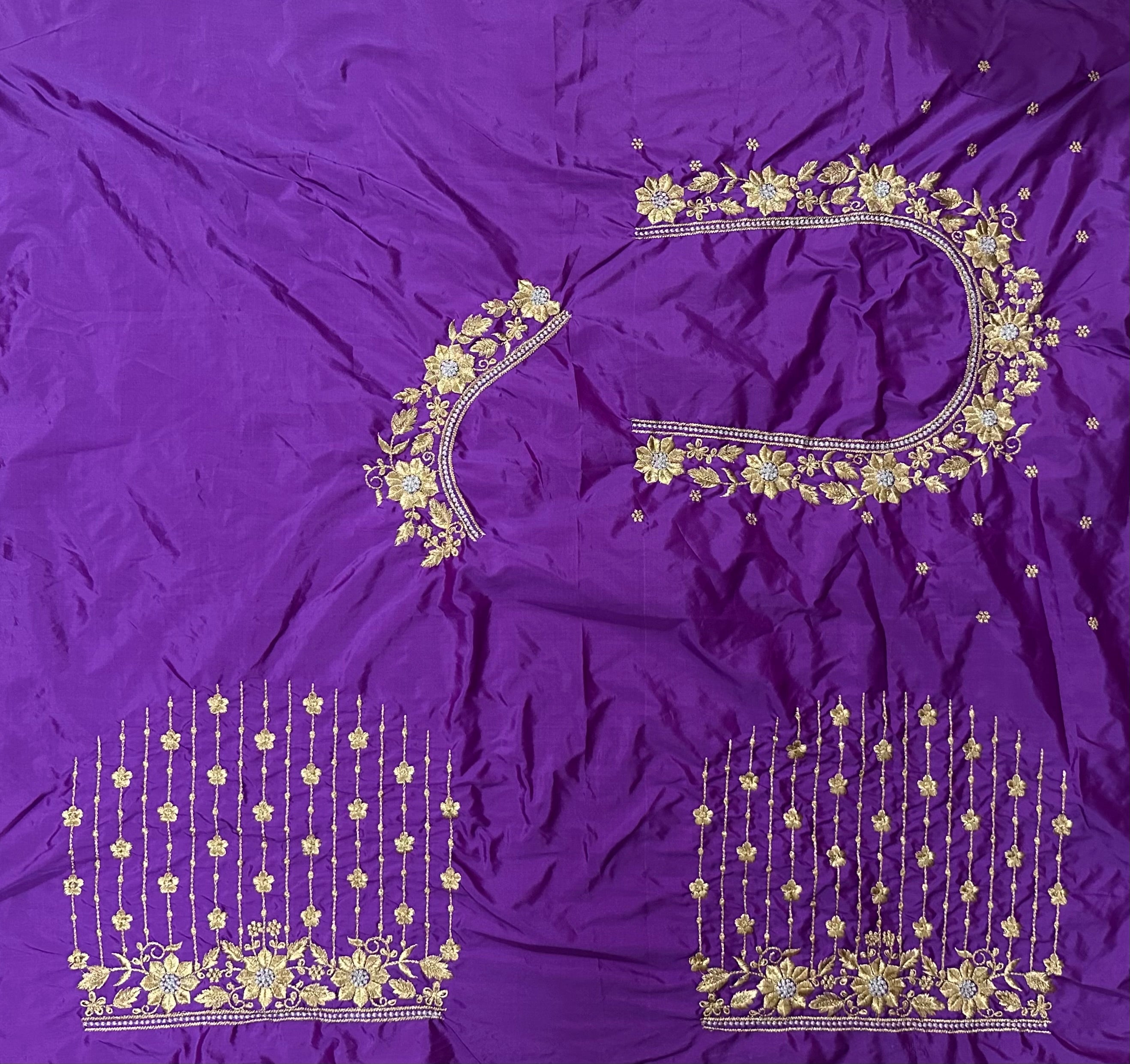 Violet Colour Computer Work Blouse 1 MTR SILK COTTON CLOTHMACHINE EMBROIDARY WORK BLOUSENECK DEEP 10 TO 11...