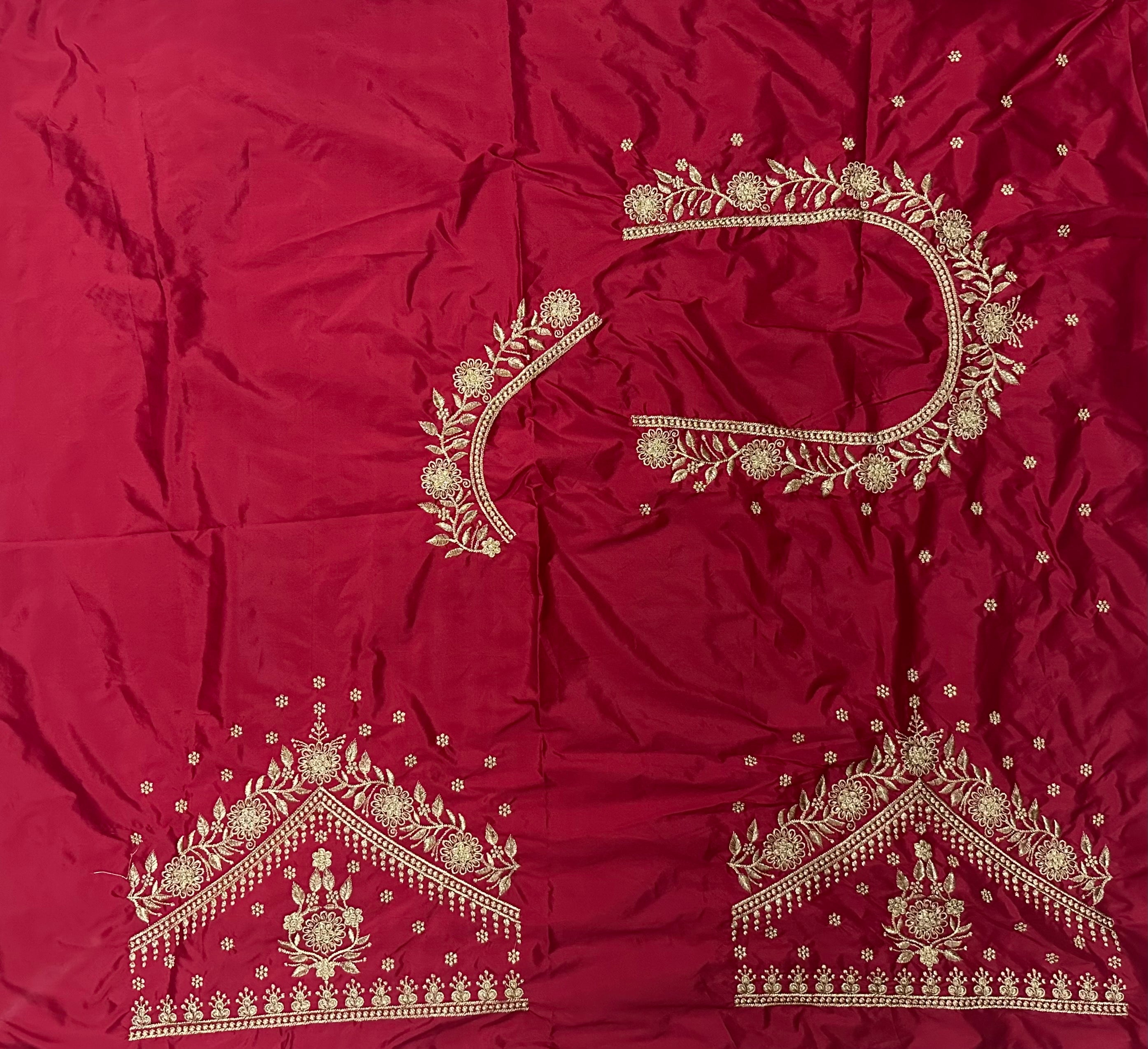 Red Colour Computer Work Blouse 1 MTR SILK COTTON CLOTHMACHINE EMBROIDARY WORK BLOUSENECK DEEP 10 TO 11...