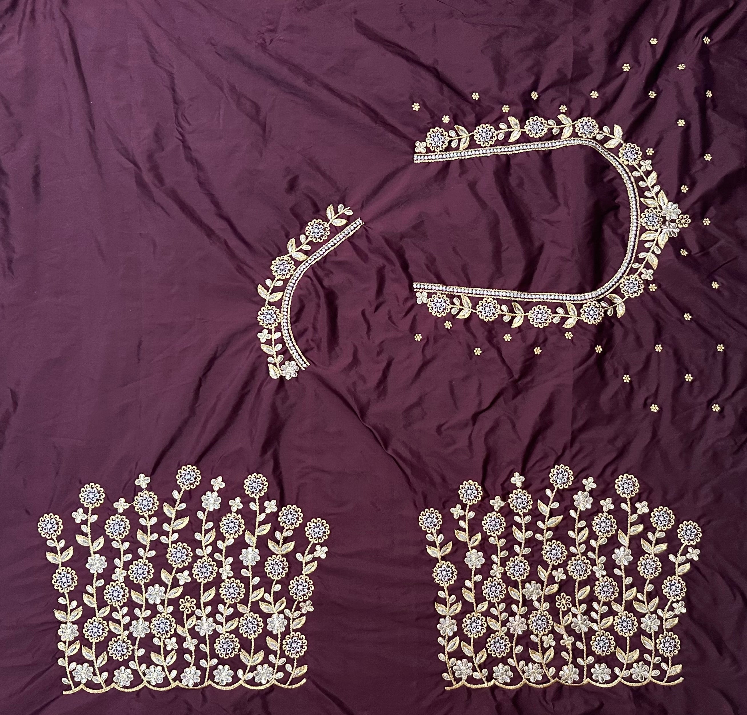 Coffee Colour Computer Work Blouse 1 MTR SILK COTTON CLOTHMACHINE EMBROIDARY WORK BLOUSENECK DEEP 10 TO 11...