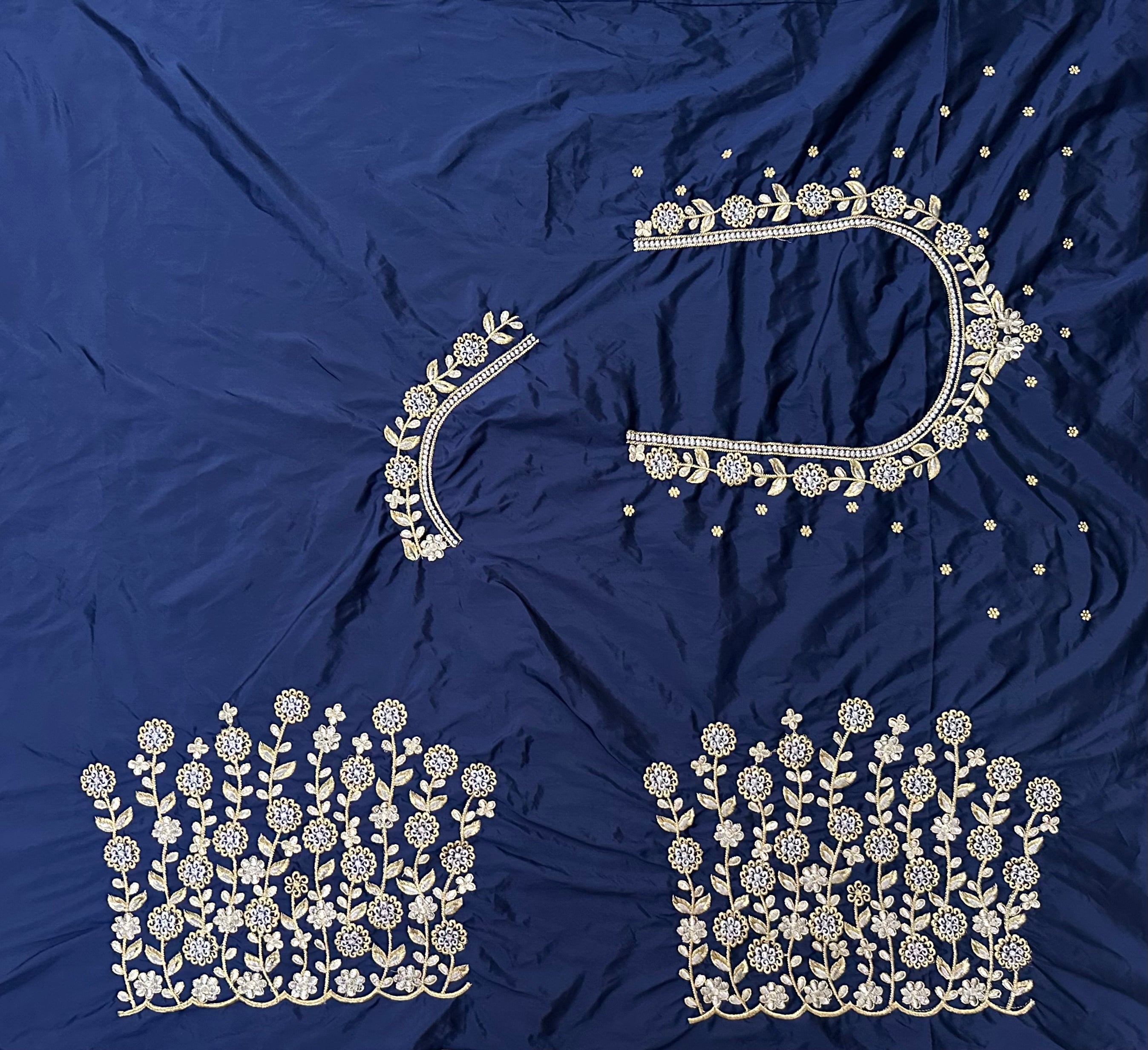 Navy Blue Colour Computer Work Blouse 1 MTR SILK COTTON CLOTHMACHINE EMBROIDARY WORK BLOUSENECK DEEP 10 TO...
