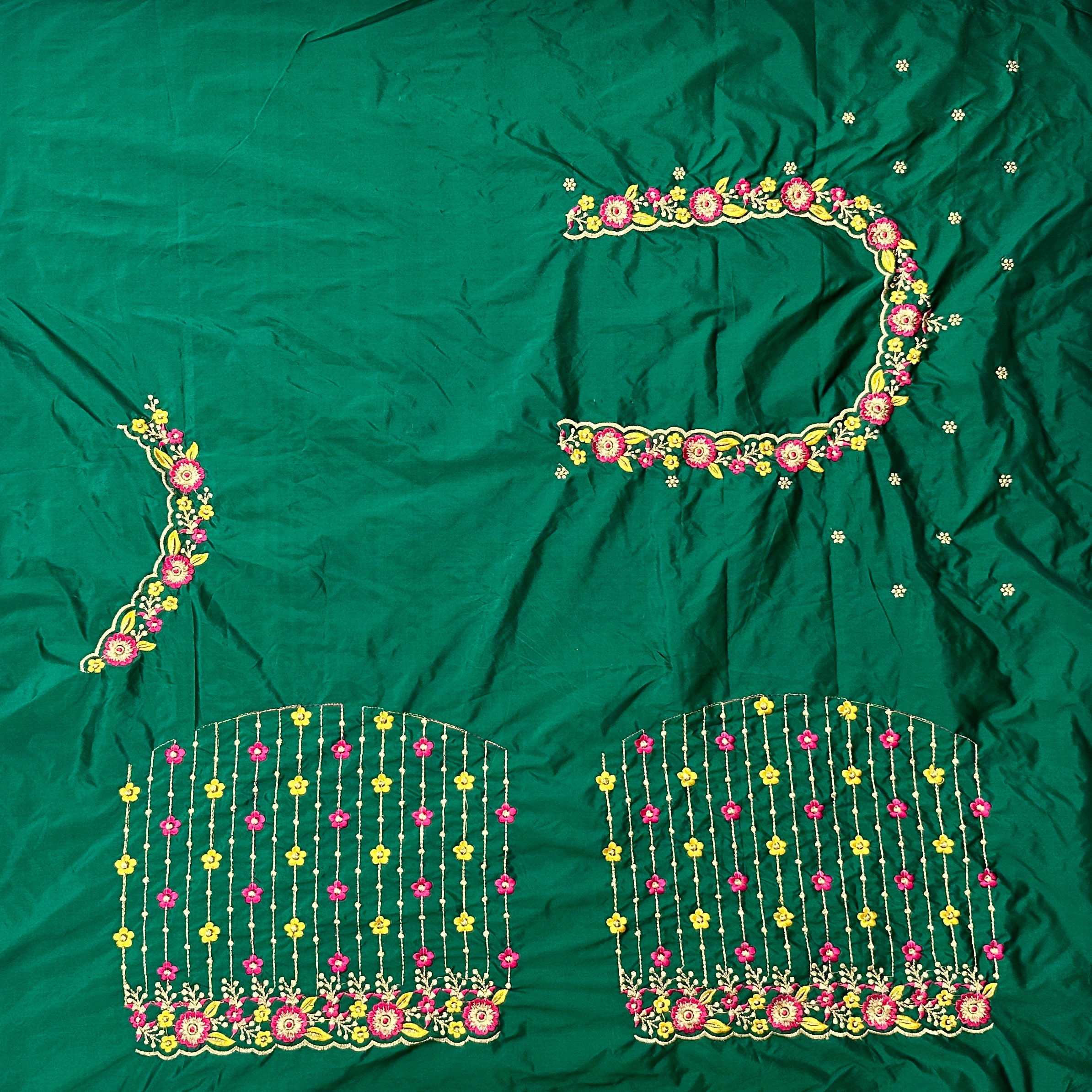 Bottle Green Colour Computer Multi Work Blouse 1 MTR SILK COTTON CLOTHBottle Green ColourMACHINE EMBROIDARY MULTI WORK...