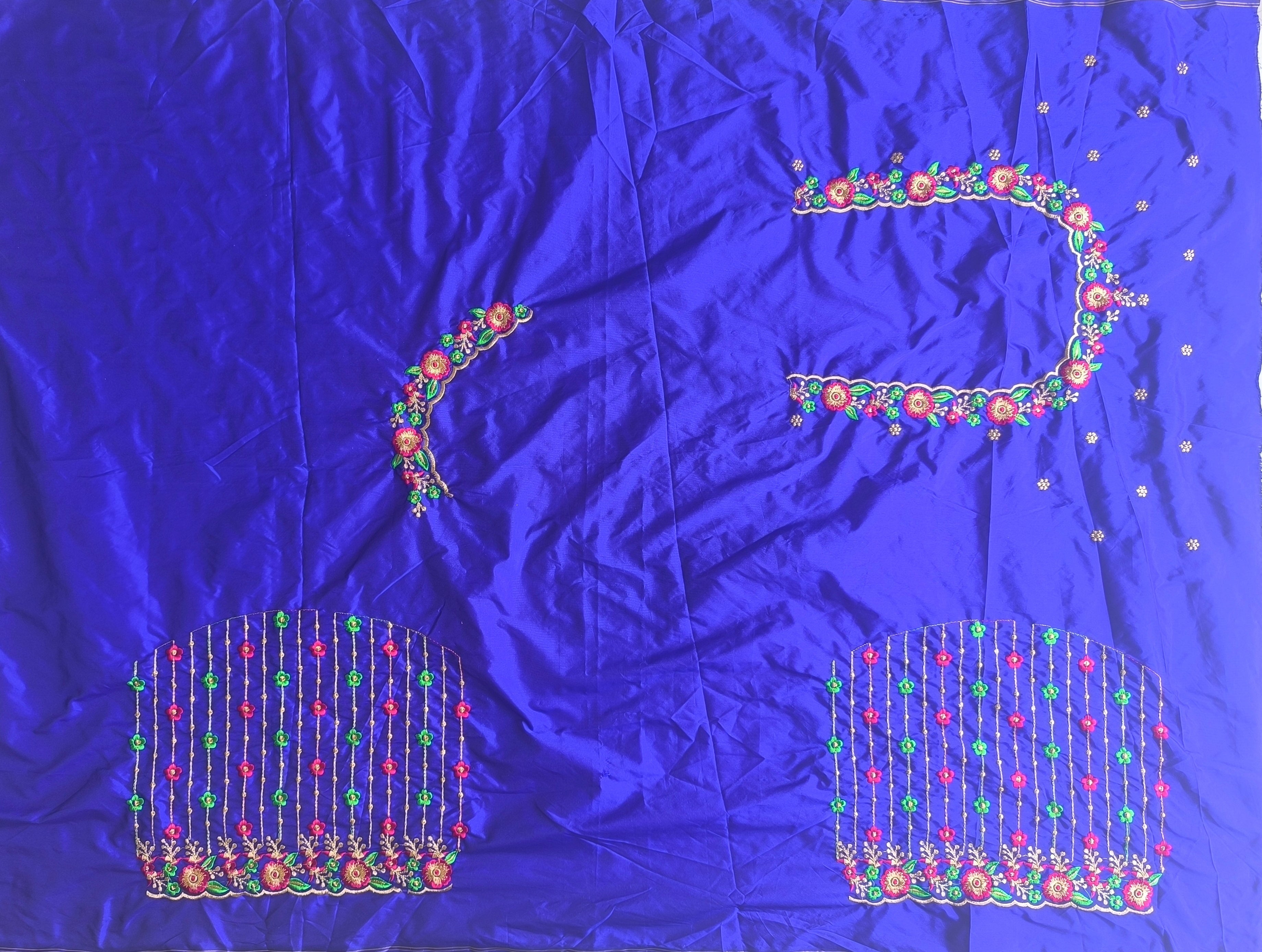Ink Blue  Colour Computer Multi Work Blouse 1 MTR SILK COTTON CLOTHInk Blue ColourMACHINE EMBROIDARY MULTI WORK...