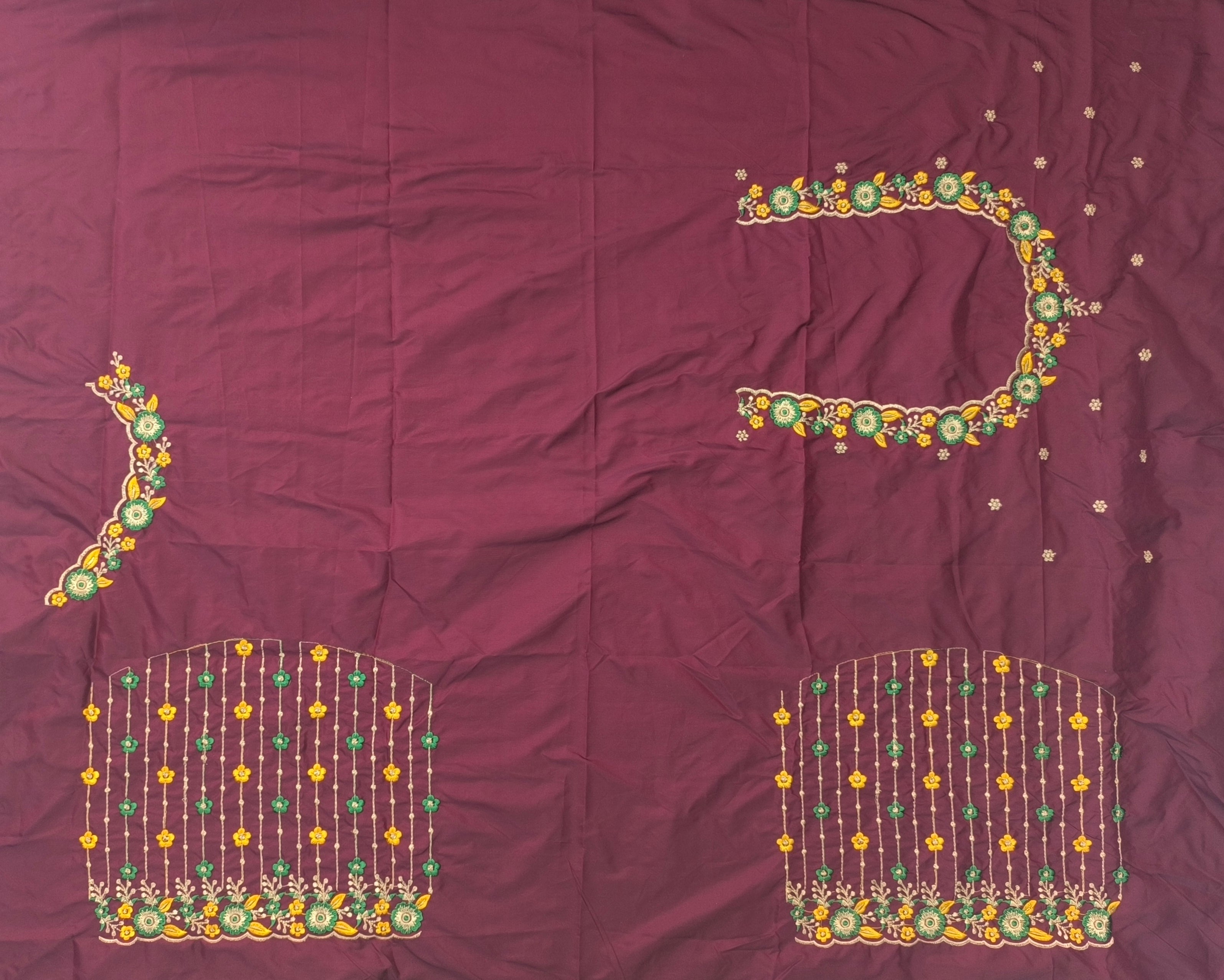 Maroon Colour Computer Multi Work Blouse 1 MTR SILK COTTON CLOTHMaroon ColourMACHINE EMBROIDARY MULTI WORK BLOUSENECK DEEP...