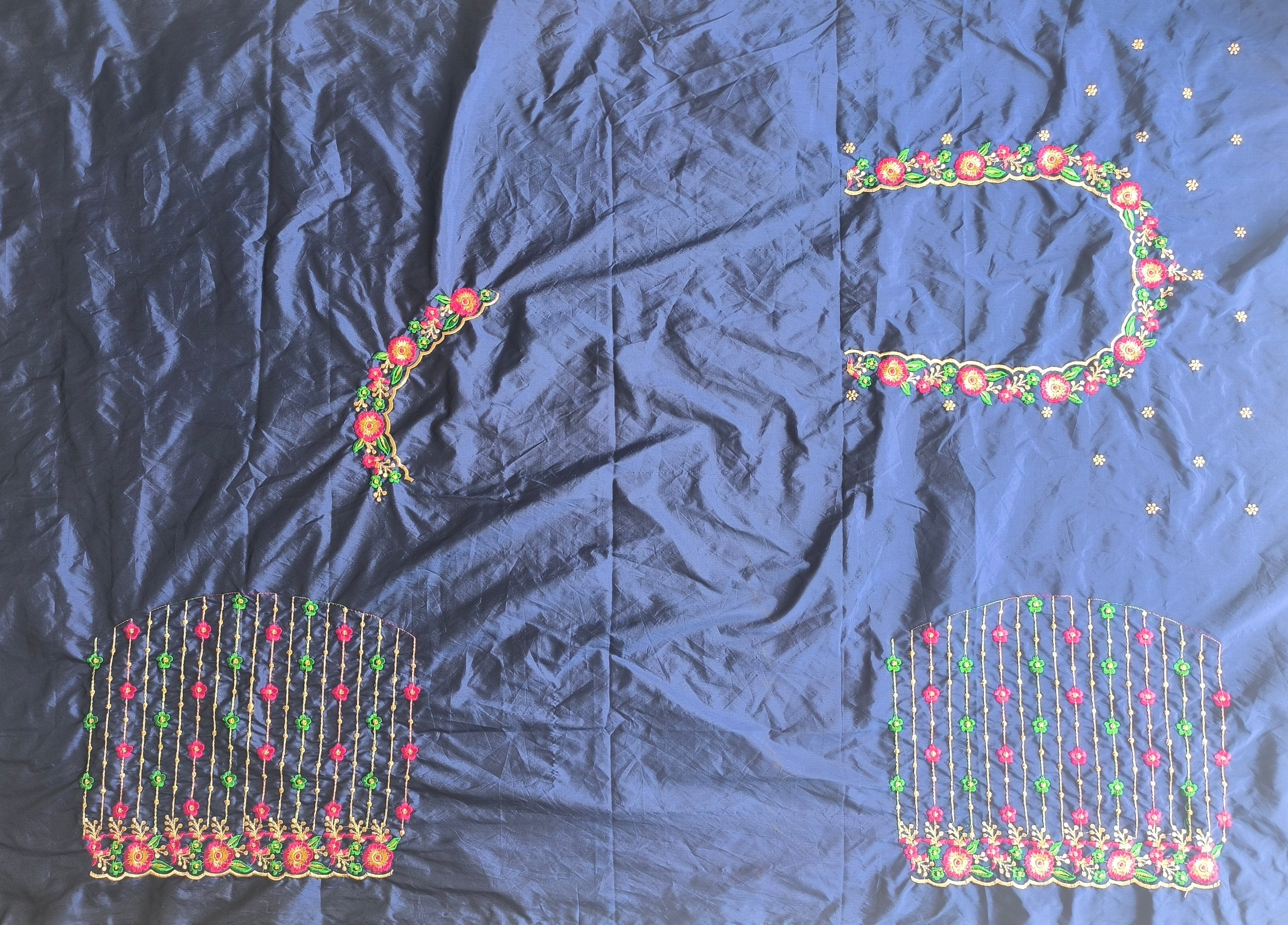 Navy Blue Colour Computer Multi Work Blouse 1 MTR SILK COTTON CLOTHNavy Blue  ColourMACHINE EMBROIDARY MULTI WORK...