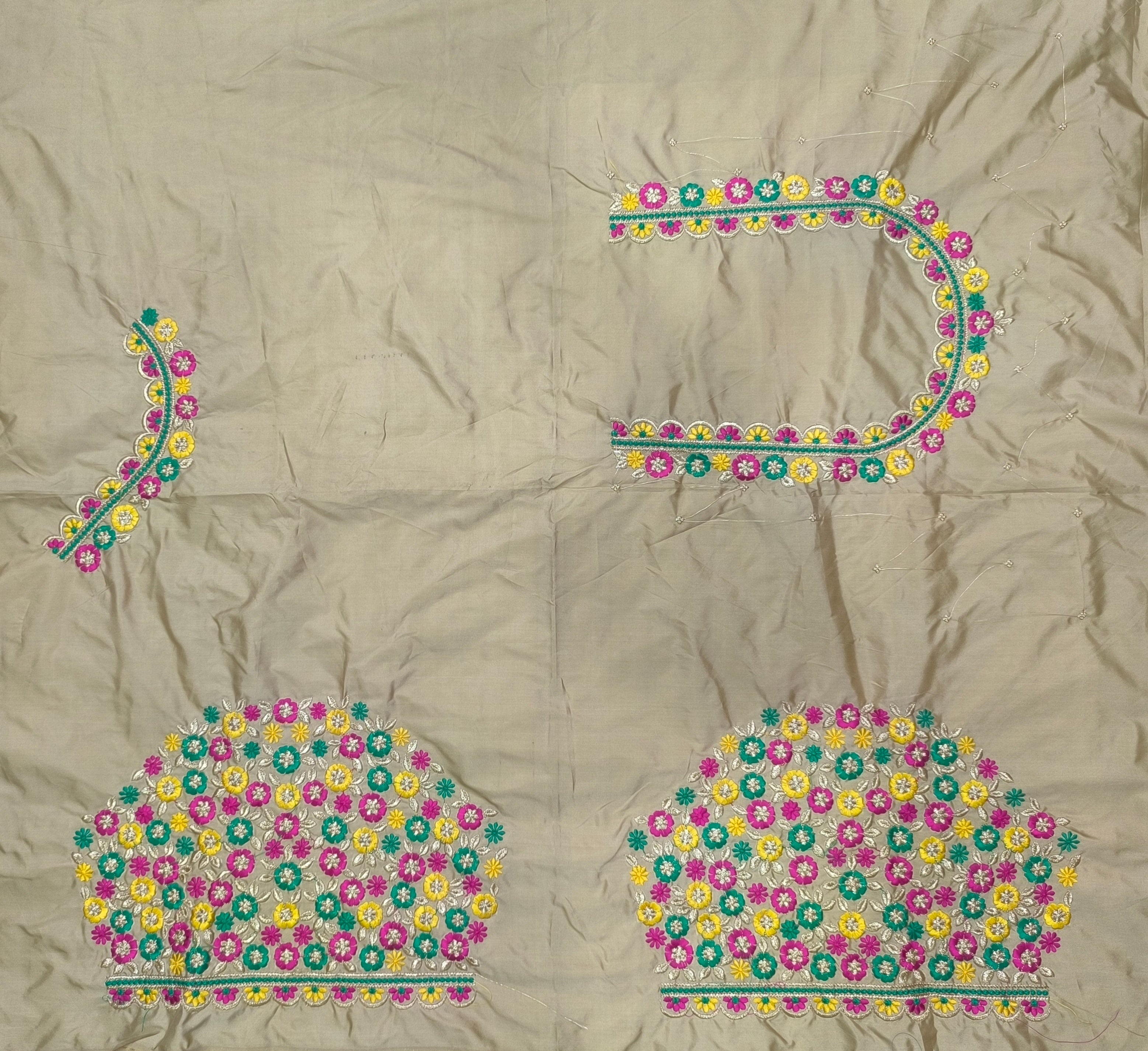 Gold Colour Computer Multi Work Blouse 1 MTR SILK COTTON CLOTHGold ColourMACHINE EMBROIDARY MULTI WORK BLOUSENECK DEEP...