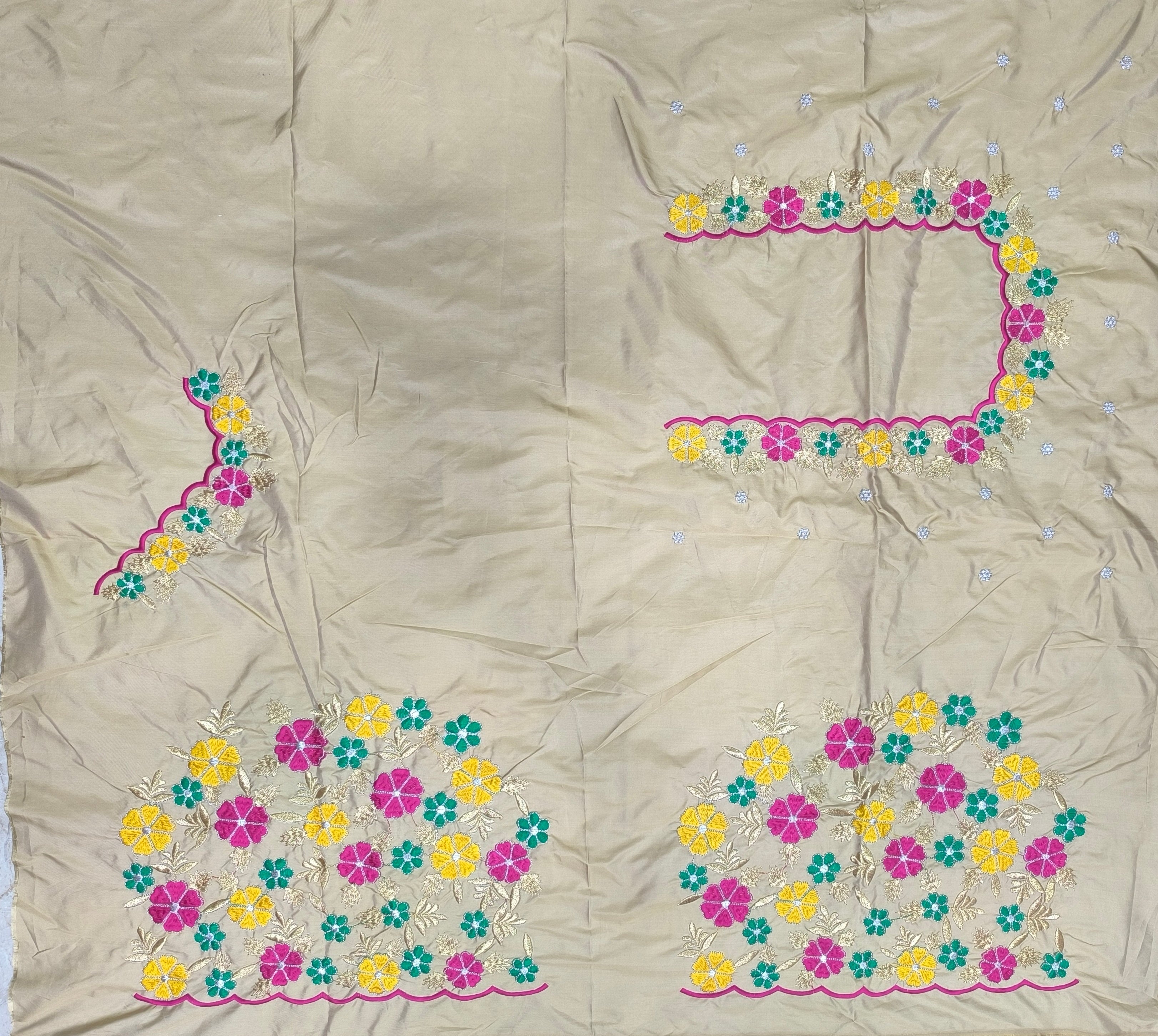 Gold Colour Computer Multi Work Blouse 1 MTR SILK COTTON CLOTHGold ColourMACHINE EMBROIDARY MULTI WORK BLOUSENECK DEEP...