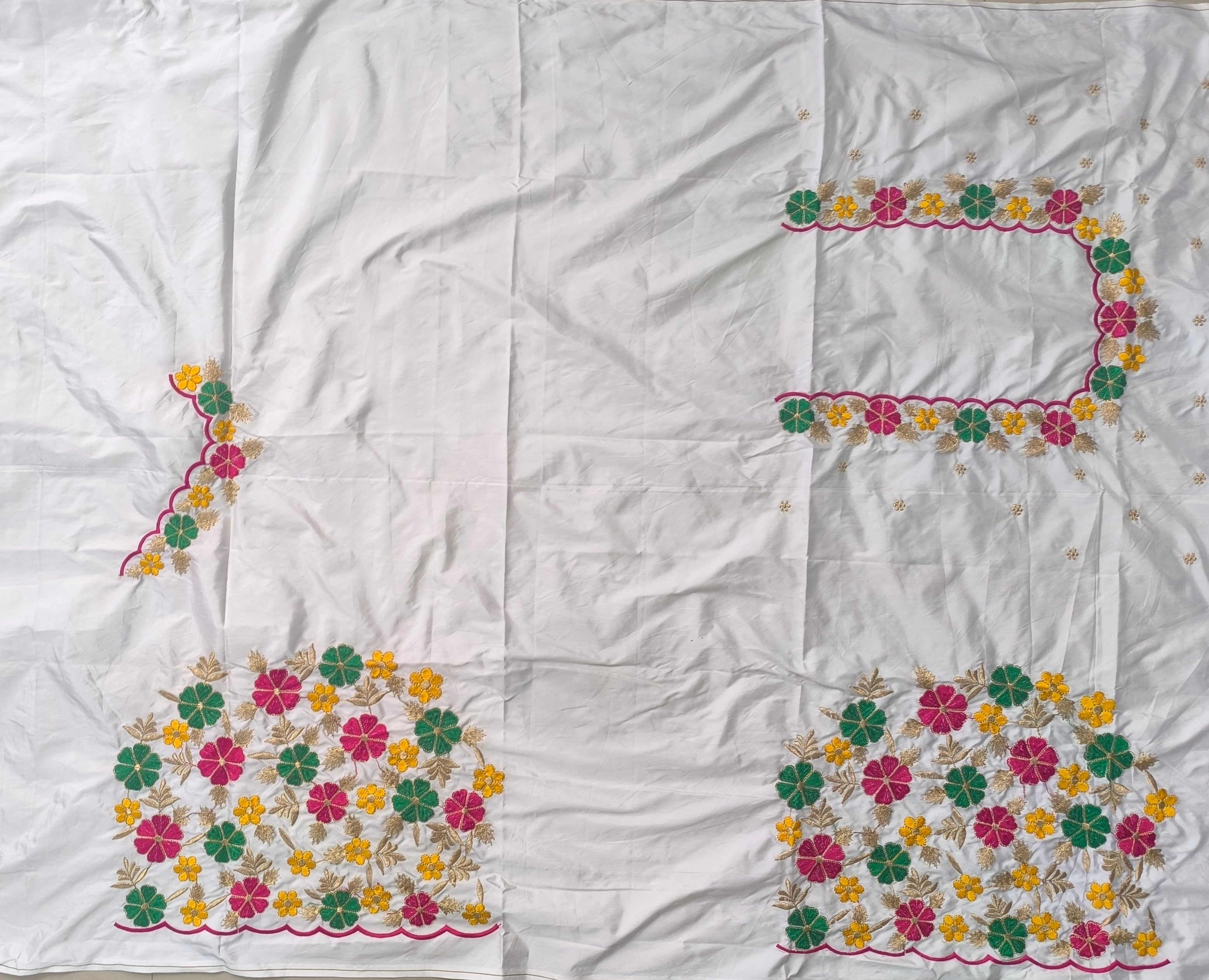 White Colour  Computer Multi Work Blouse 1 MTR SILK COTTON CLOTHMACHINE EMBROIDARY MULTI WORK BLOUSENECK DEEP 10...