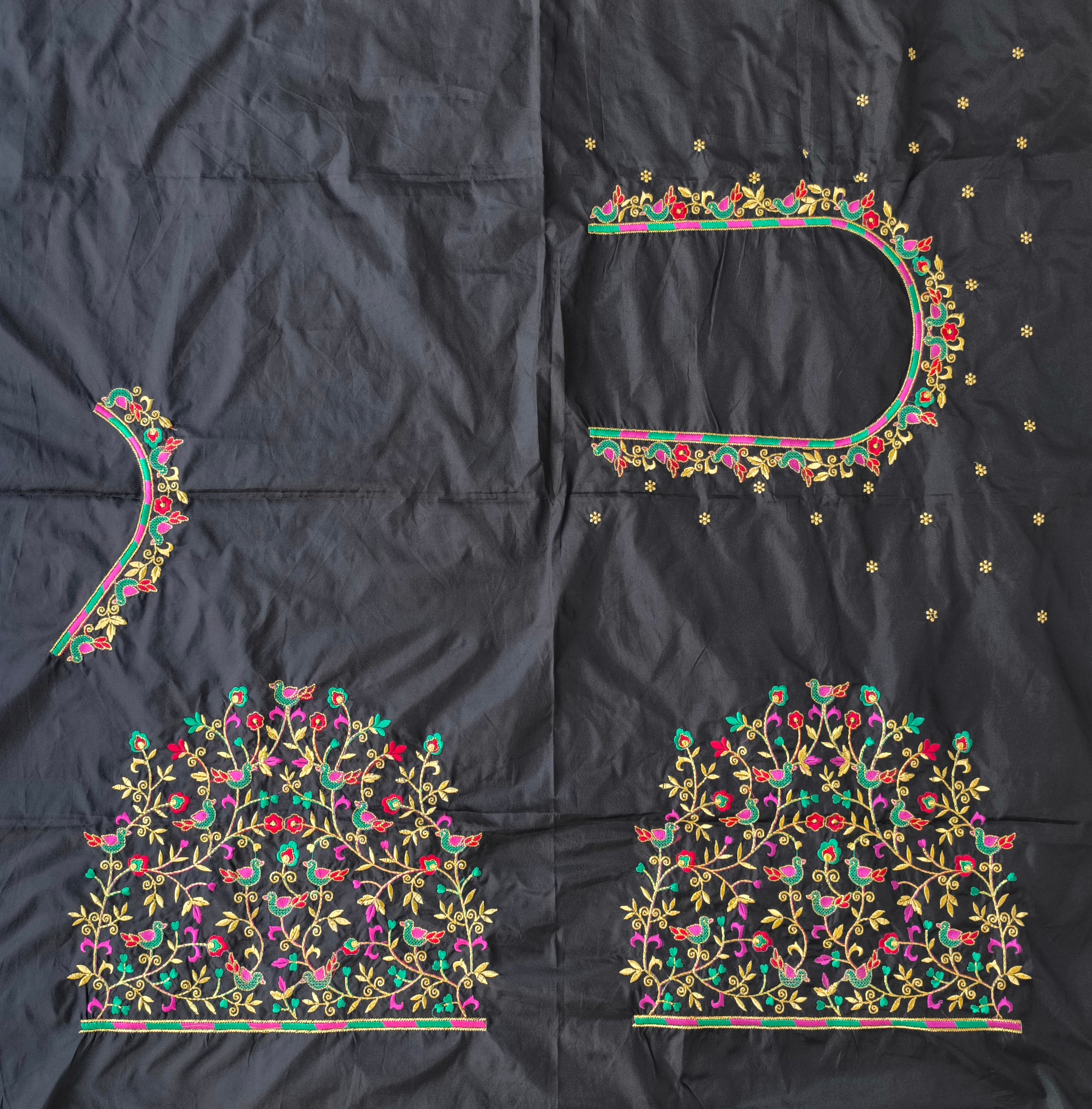 Black Colour Computer Multi Colour Work Blouse 1 MTR SILK COTTON CLOTHBlack ColourMACHINE EMBROIDARY MULTI WORK BLOUSENECK...