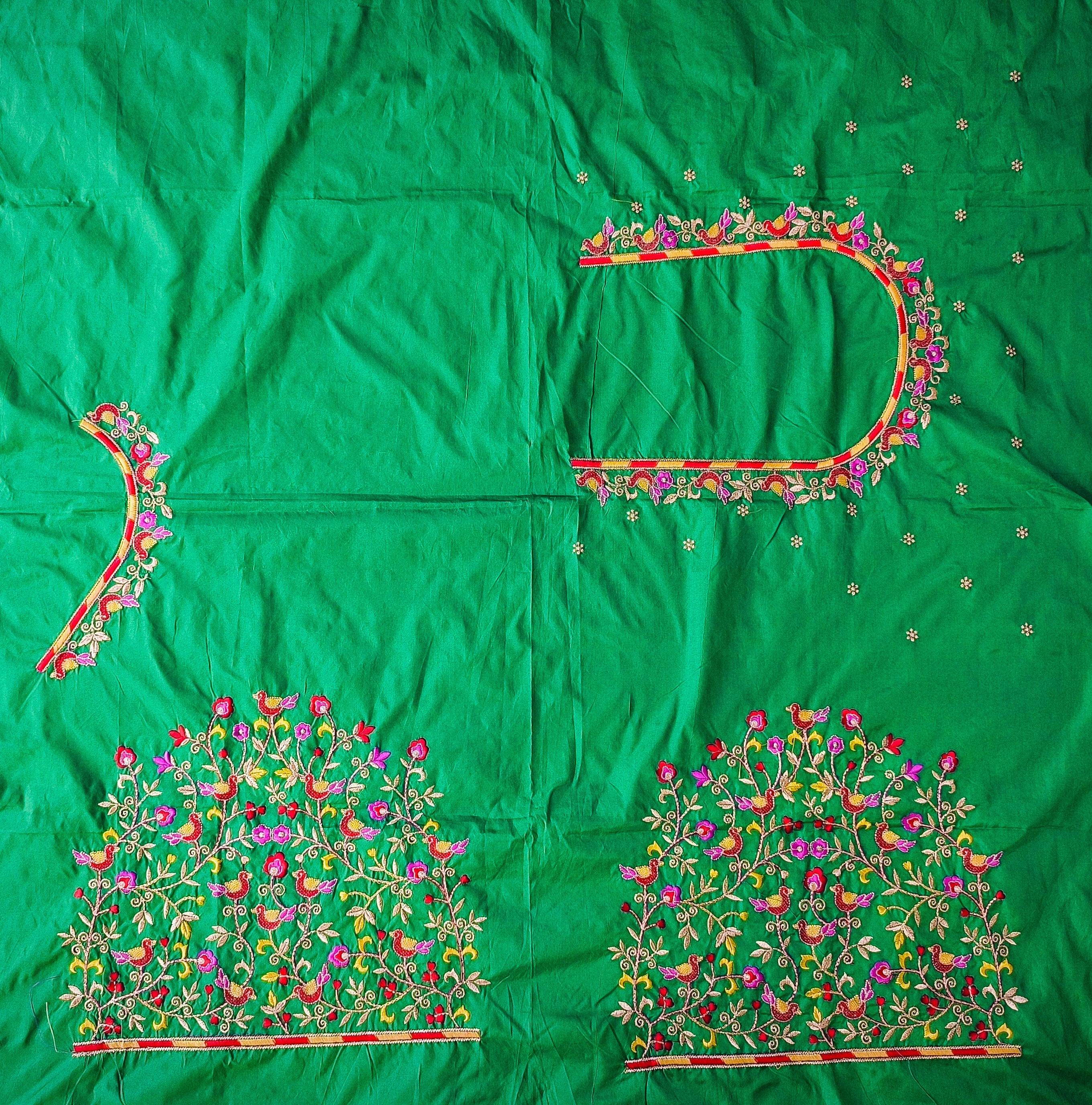 Green Colour Computer Multi Colour Work Blouse 1 MTR SILK COTTON CLOTHGreen ColourMACHINE EMBROIDARY MULTI WORK BLOUSENECK...