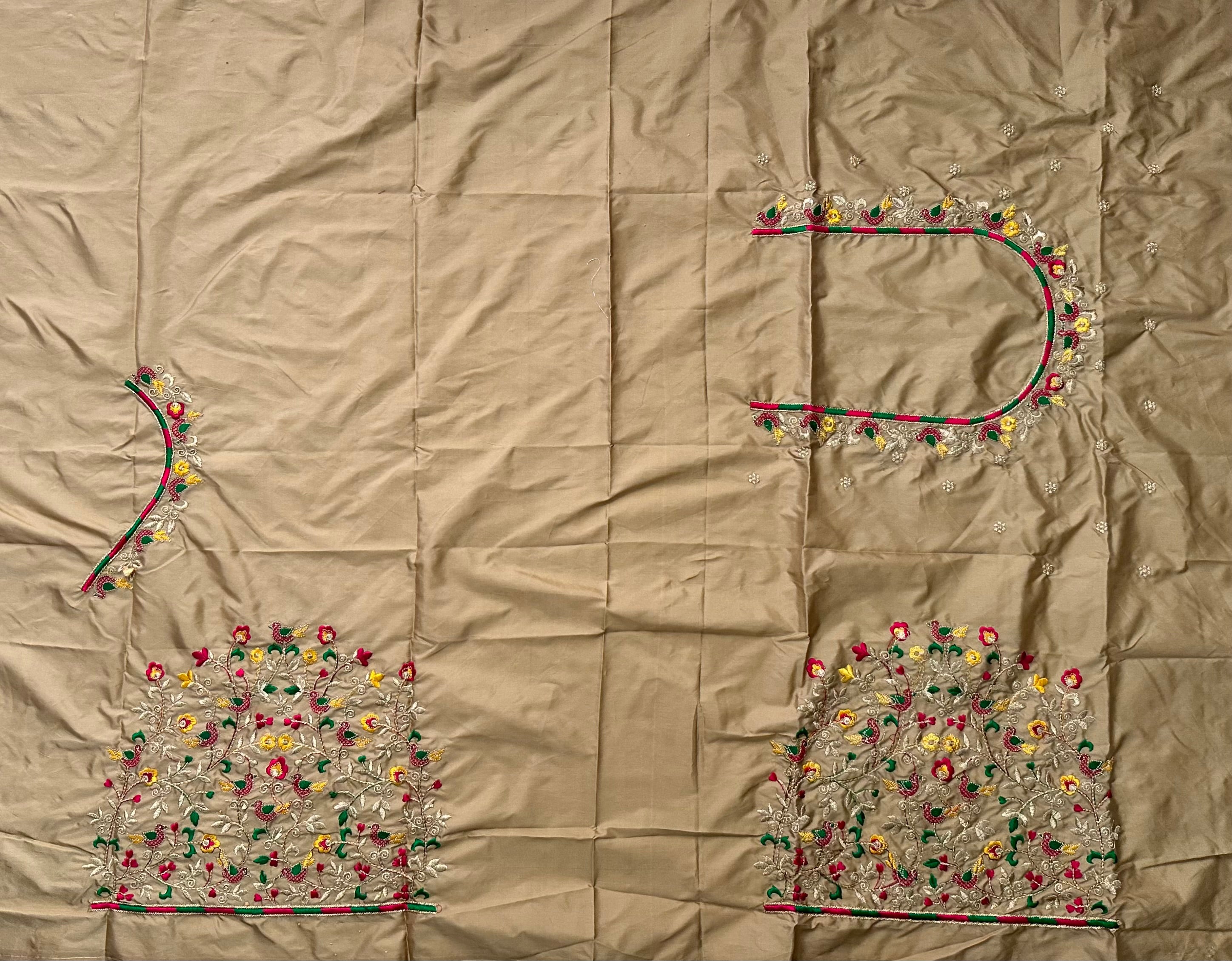Gold Colour Computer Multi Colour Work Blouse 1 MTR SILK COTTON CLOTHMACHINE EMBROIDARY MULTI WORK BLOUSENECK DEEP...