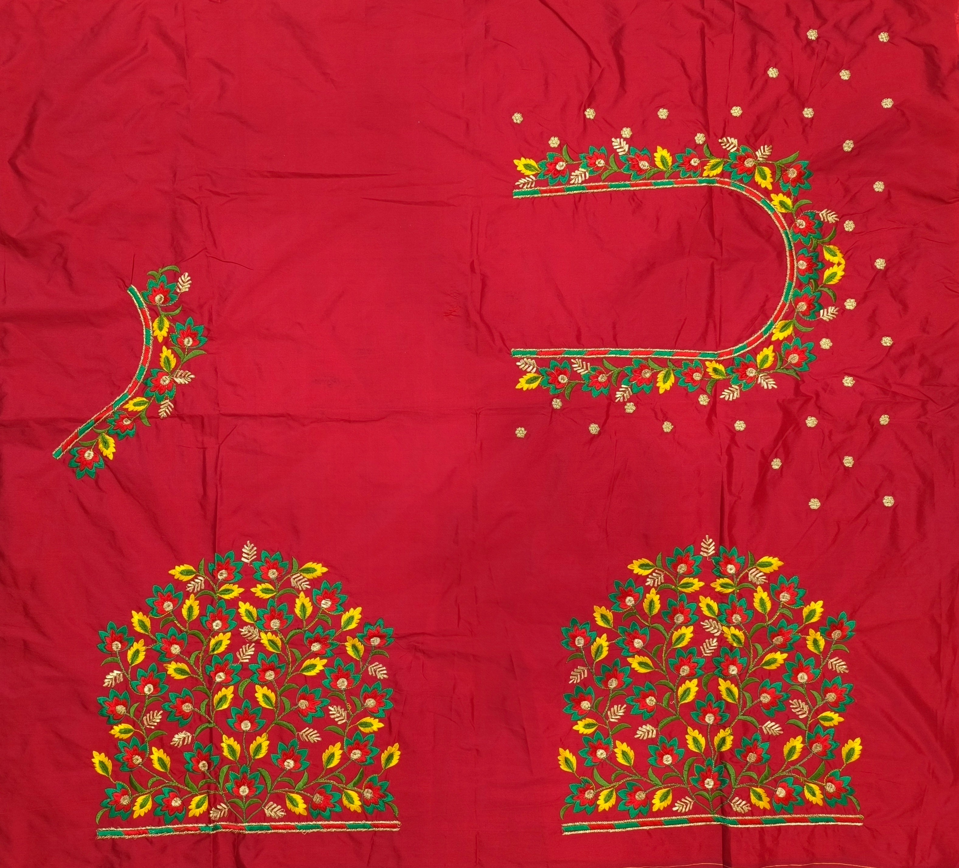 Red Colour Computer Multi Work Blouse 1 MTR SILK COTTON CLOTHRed ColourMACHINE EMBROIDARY MULTI WORK BLOUSENECK DEEP...