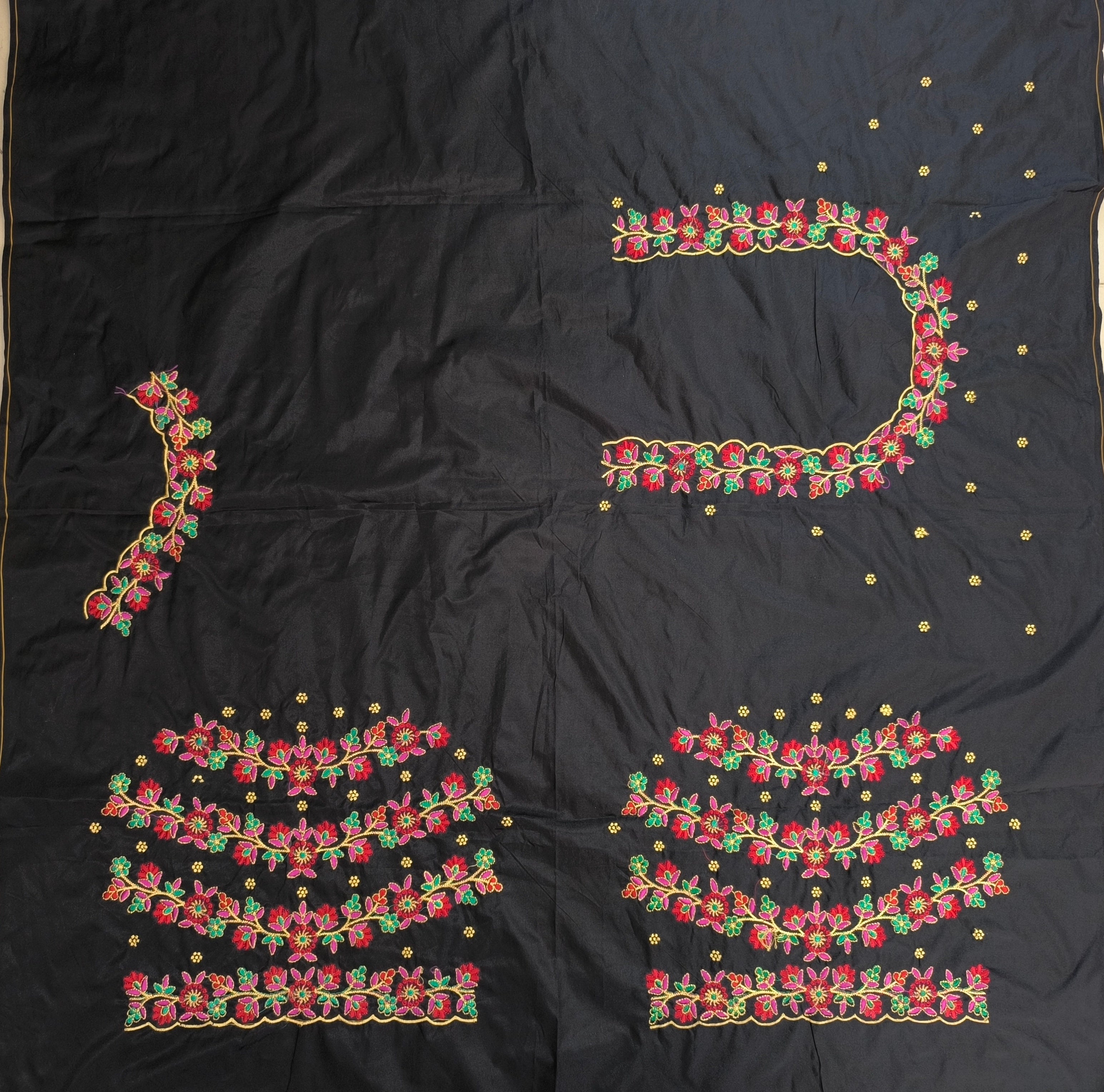 Black Colour Computer Multi Work Blouse 1 MTR SILK COTTON CLOTHBlack ColourMACHINE EMBROIDARY MULTI WORK BLOUSENECK DEEP...