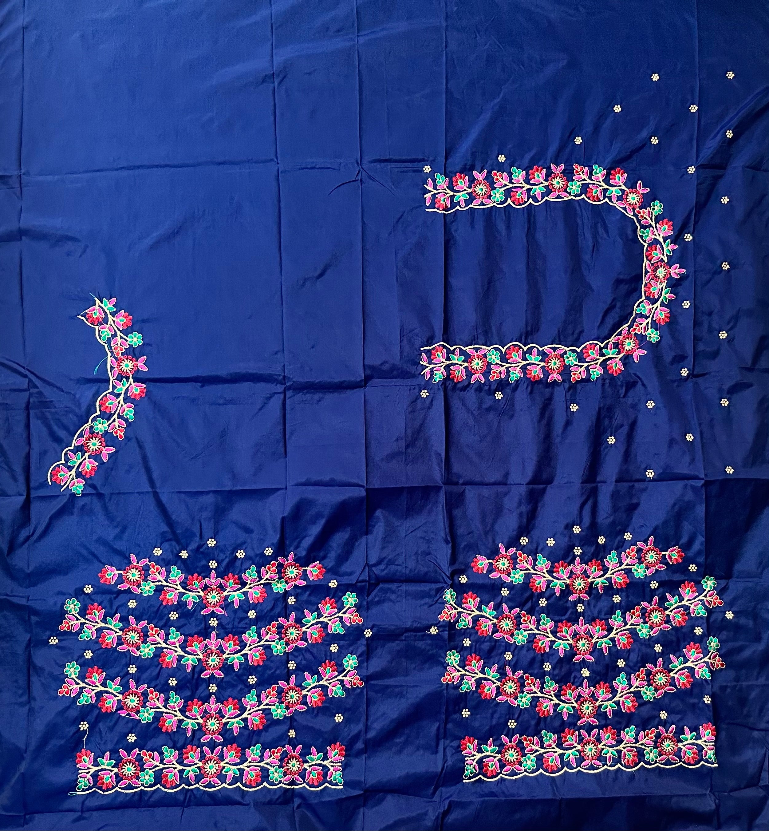 Navy Blue Colour Computer Multi Work Blouse 1 MTR SILK COTTON CLOTHMACHINE EMBROIDARY MULTI WORK BLOUSENECK DEEP...