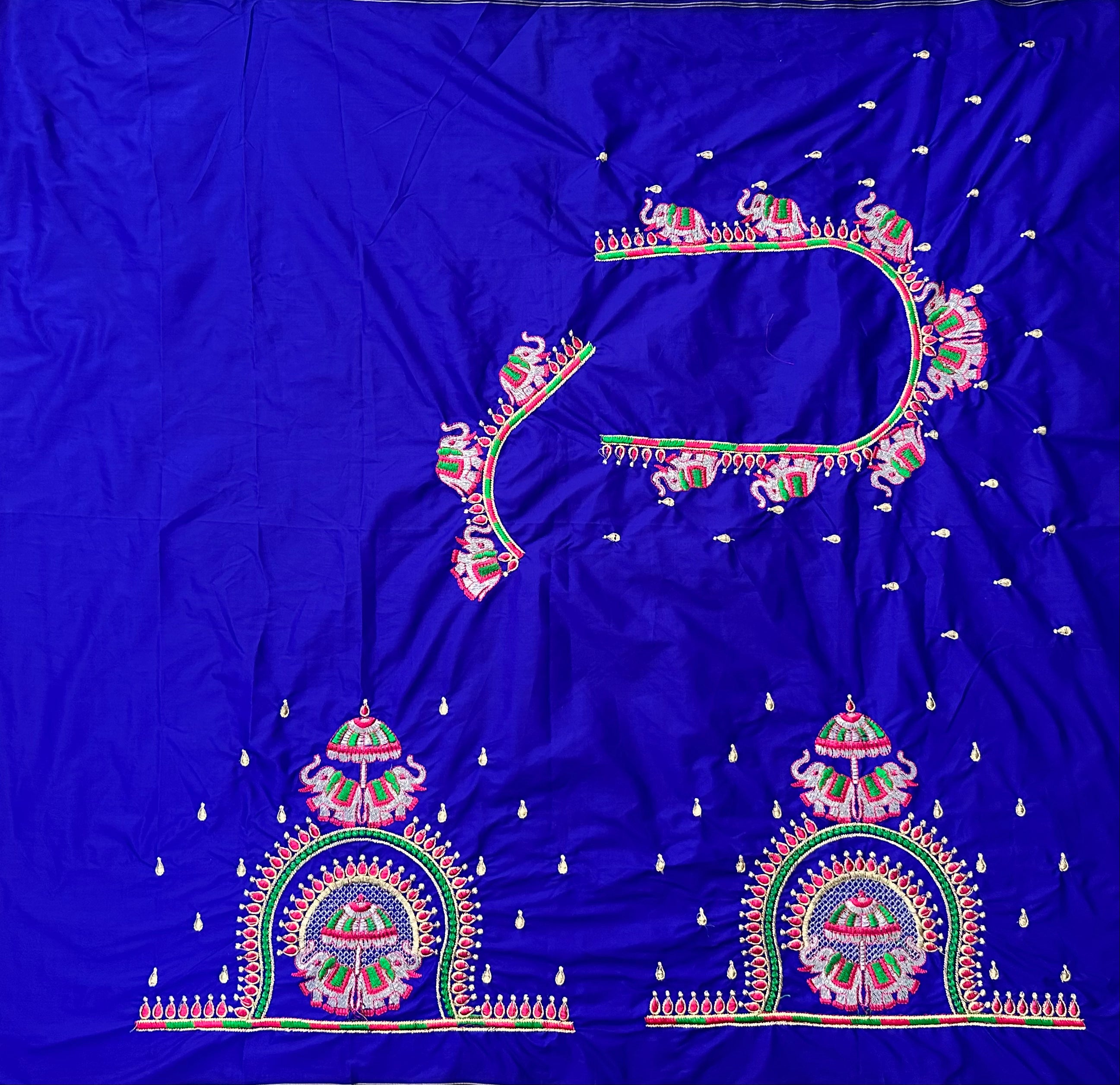 Ink Blue Colour Computer Multi Work Blouse 1 MTR SILK COTTON CLOTHMACHINE EMBROIDARY MULTI WORK BLOUSENECK DEEP...