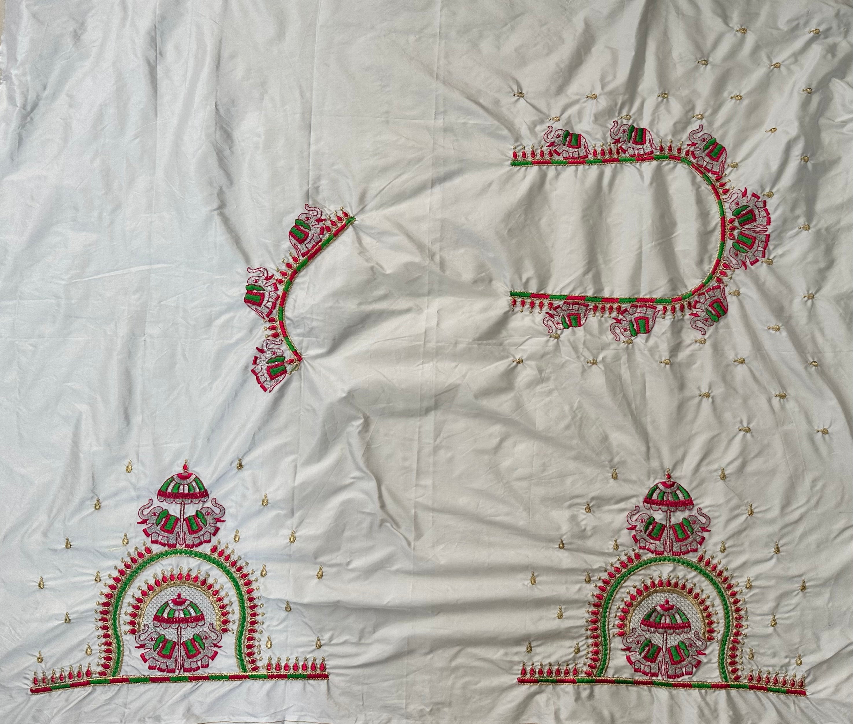 Off White Colour Computer Multi Work Blouse 1 MTR SILK COTTON CLOTHMACHINE EMBROIDARY MULTI WORK BLOUSENECK DEEP...