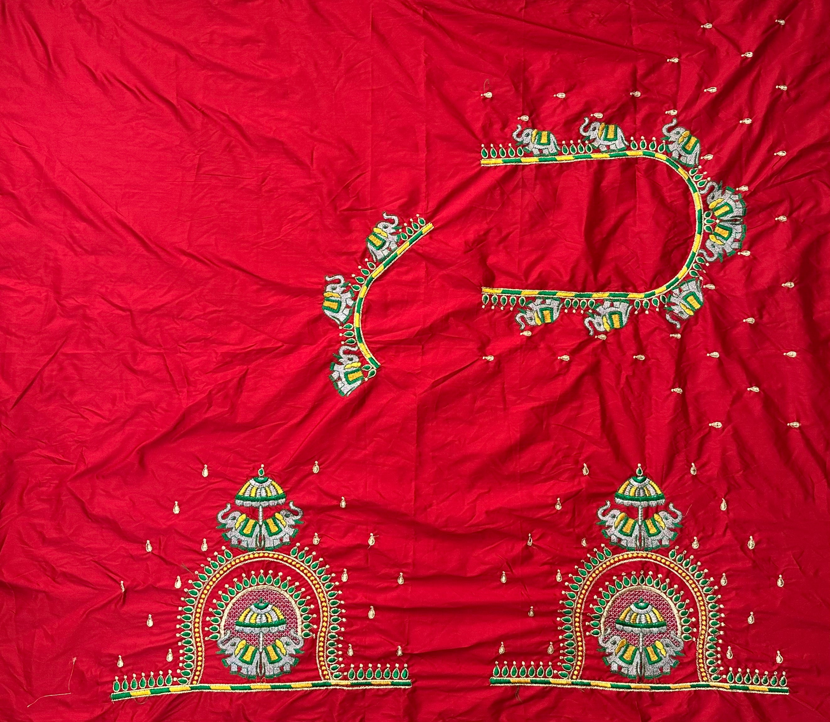 Red Colour Computer Multi Work Blouse 1 MTR SILK COTTON CLOTHMACHINE EMBROIDARY MULTI WORK BLOUSENECK DEEP 10...