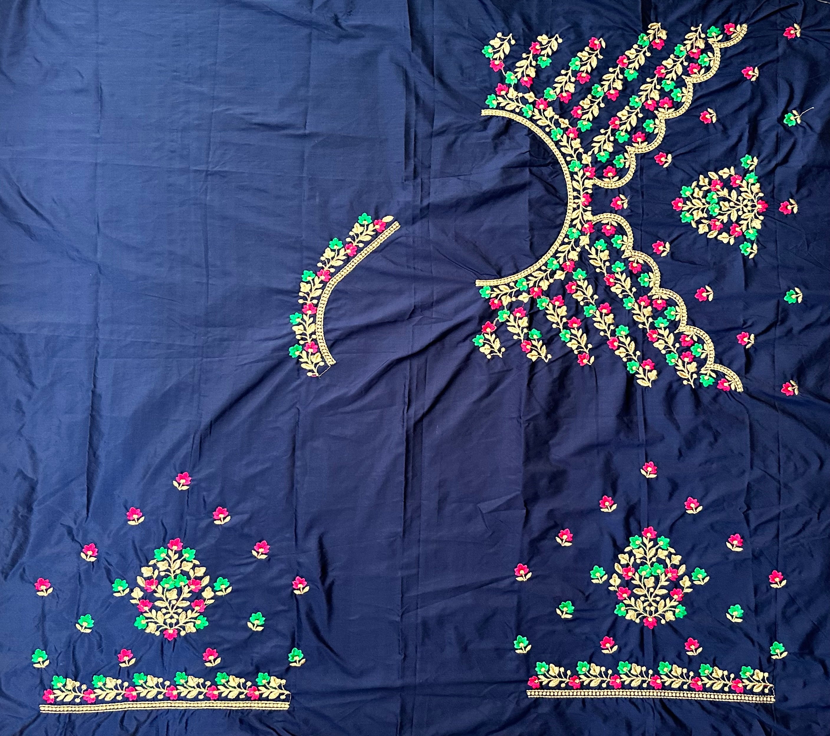 Navy Blue Colour Computer Multi Work Blouse 1 MTR SILK COTTON CLOTHMACHINE EMBROIDARY MULTI WORK BLOUSENECK DEEP...