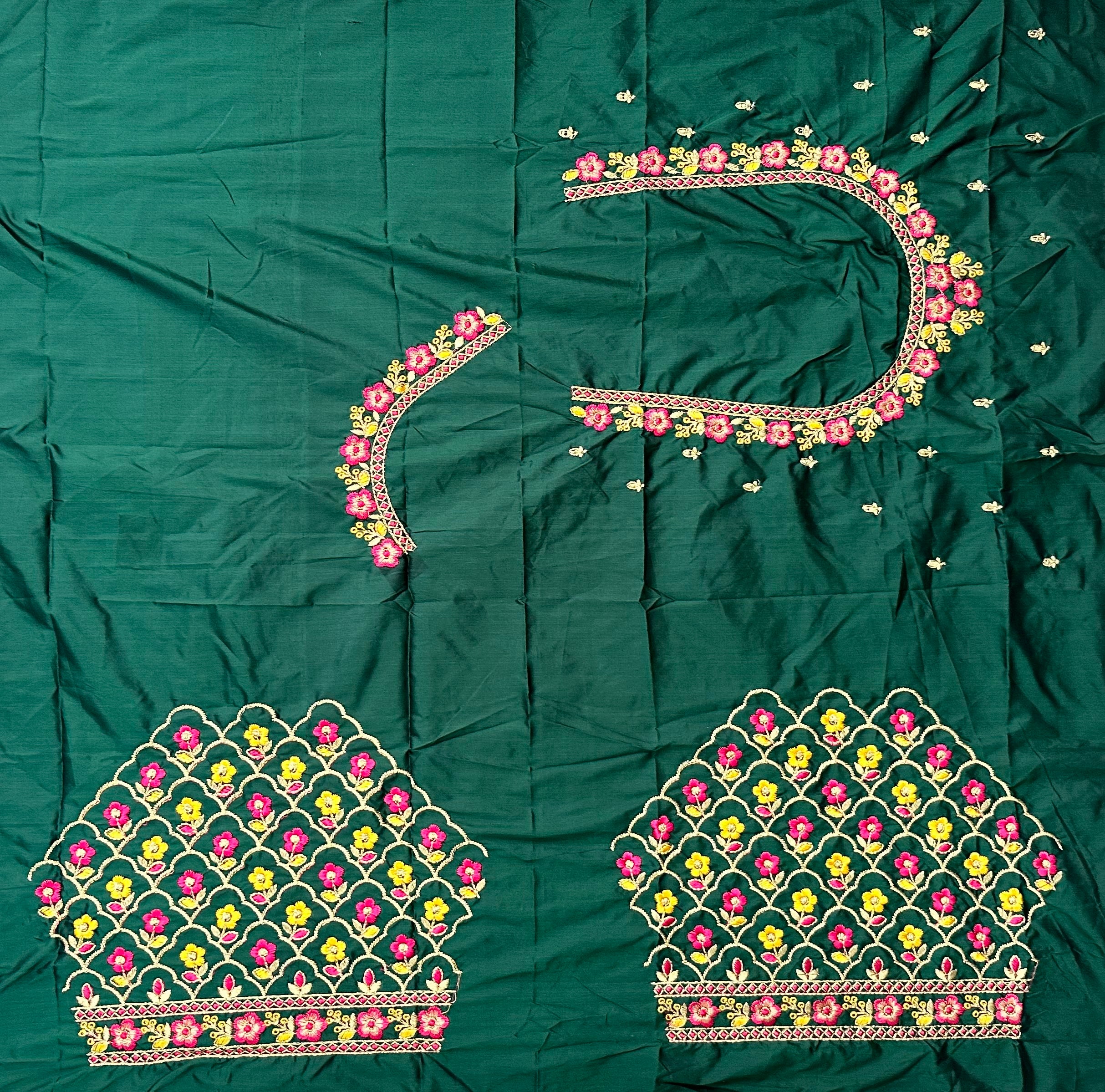 Bottle Green Colour Computer Multi Work Blouse 1 MTR SILK COTTON CLOTHMACHINE EMBROIDARY MULTI WORK BLOUSENECK DEEP...