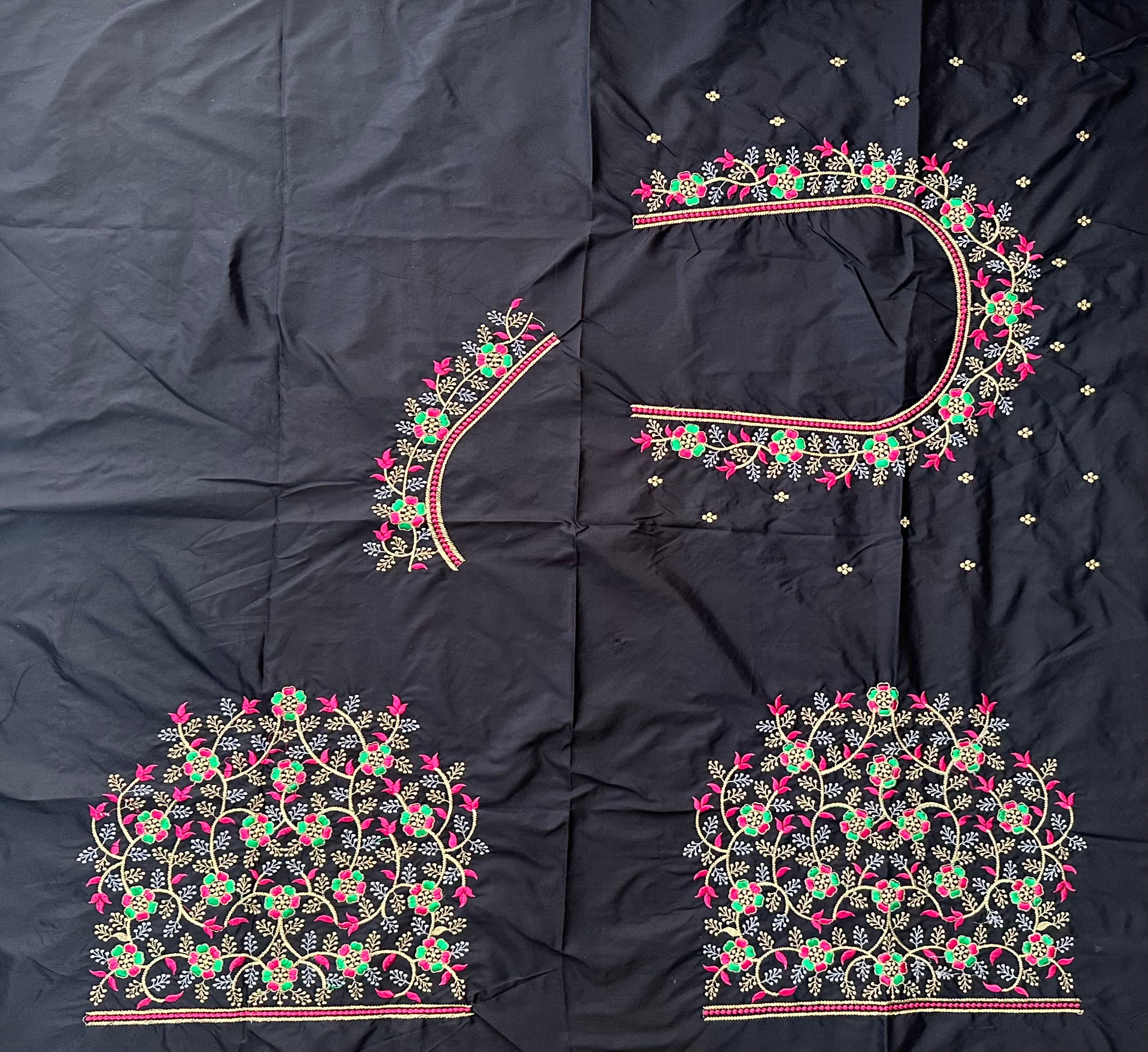 Black Colour Computer Multi Work Blouse 1 MTR SILK COTTON CLOTHMACHINE EMBROIDARY MULTI WORK BLOUSENECK DEEP 10...