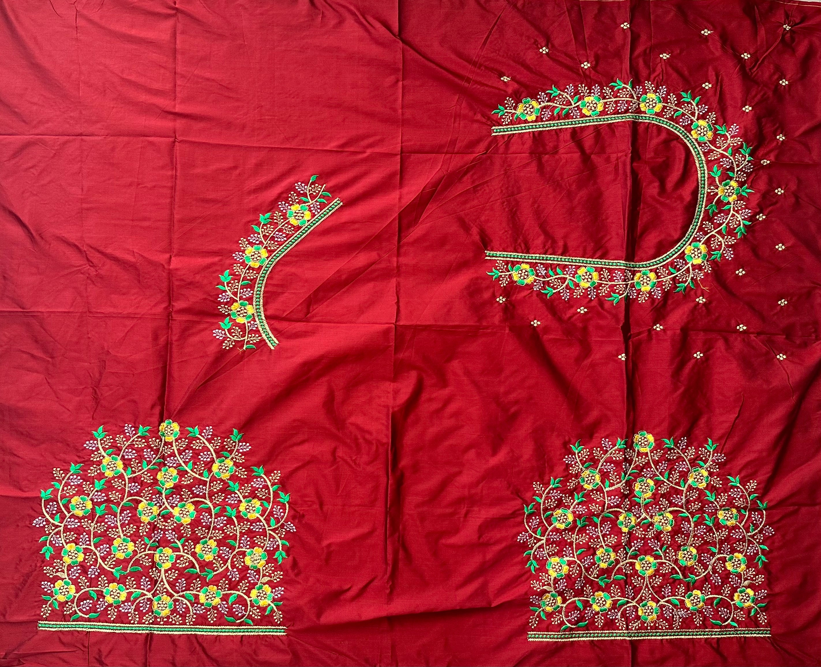 Maroon Colour Computer Multi Work Blouse 1 MTR SILK COTTON CLOTHMACHINE EMBROIDARY MULTI WORK BLOUSENECK DEEP 10...