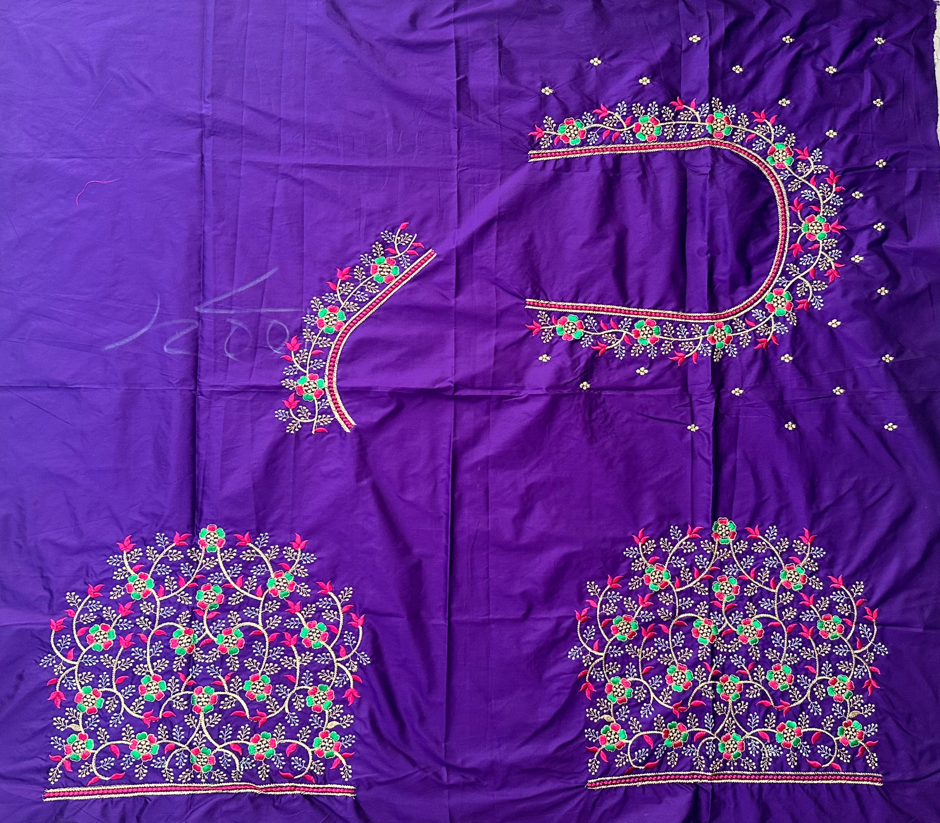 Violet Colour Computer Multi Work Blouse 1 MTR SILK COTTON CLOTHMACHINE EMBROIDARY MULTI WORK BLOUSENECK DEEP 10...