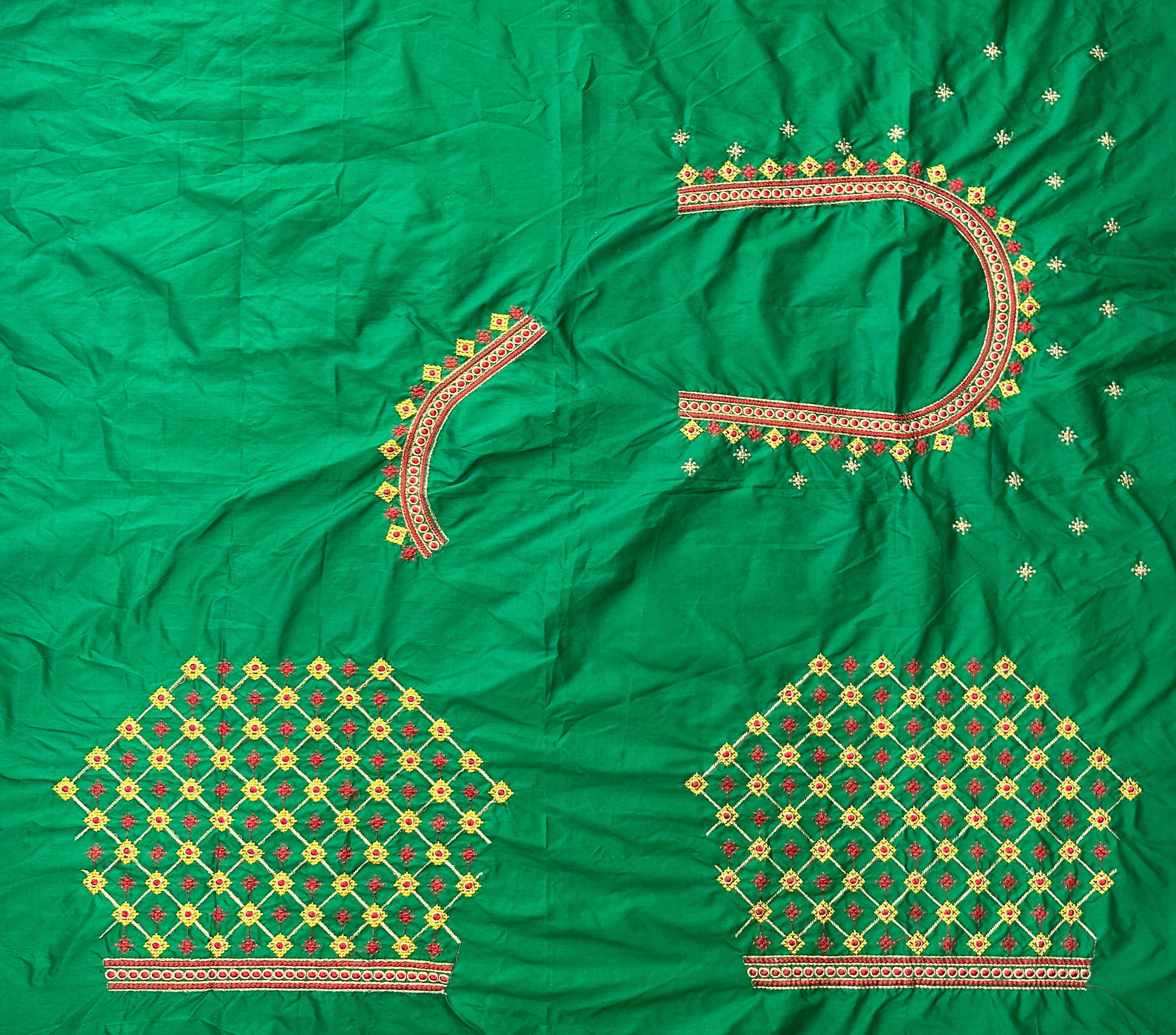 Green Colour Computer Multi Work Blouse 1 MTR SILK COTTON CLOTHMACHINE EMBROIDARY MULTI WORK BLOUSENECK DEEP 10...