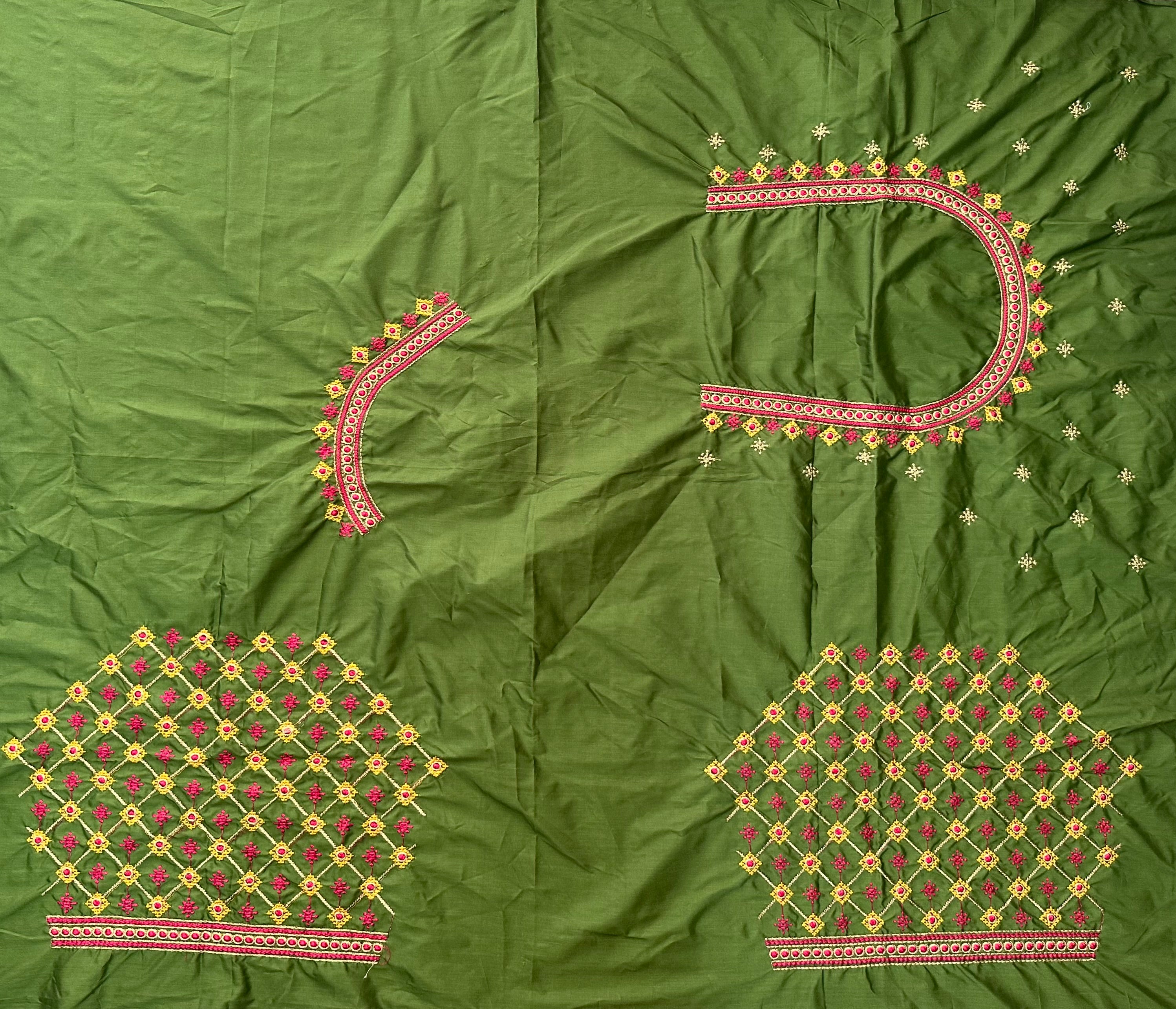 Mahendi Green Colour Computer Multi Work Blouse 1 MTR SILK COTTON CLOTHMACHINE EMBROIDARY MULTI WORK BLOUSENECK DEEP...