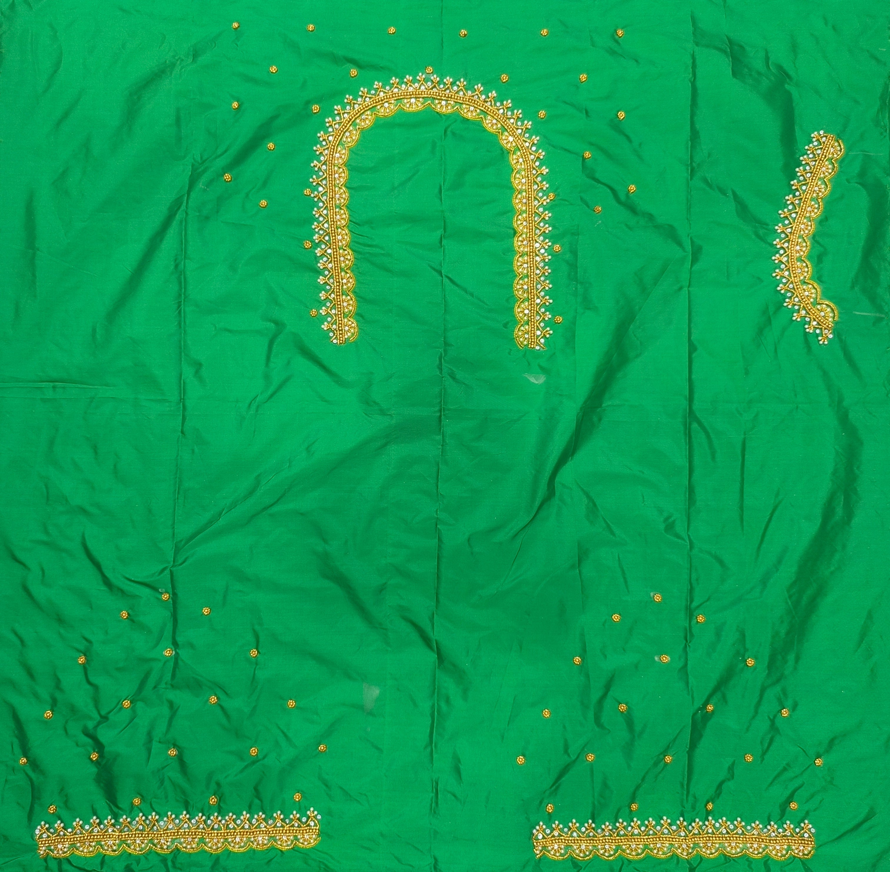 Green Colour Maggam Work Blouse 1 MTR SILK  COTTON CLOTHGreen ColorMaggam Work BlouseNECK DEEP 10 TO 11...