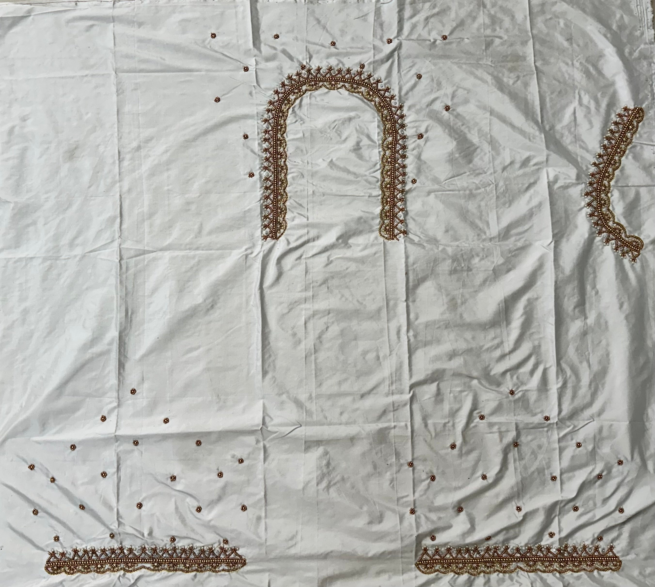 Off White Colour Maggam Work Blouse 1 MTR SILK  COTTON CLOTHMaggam Work BlouseNECK DEEP 10 TO 11...