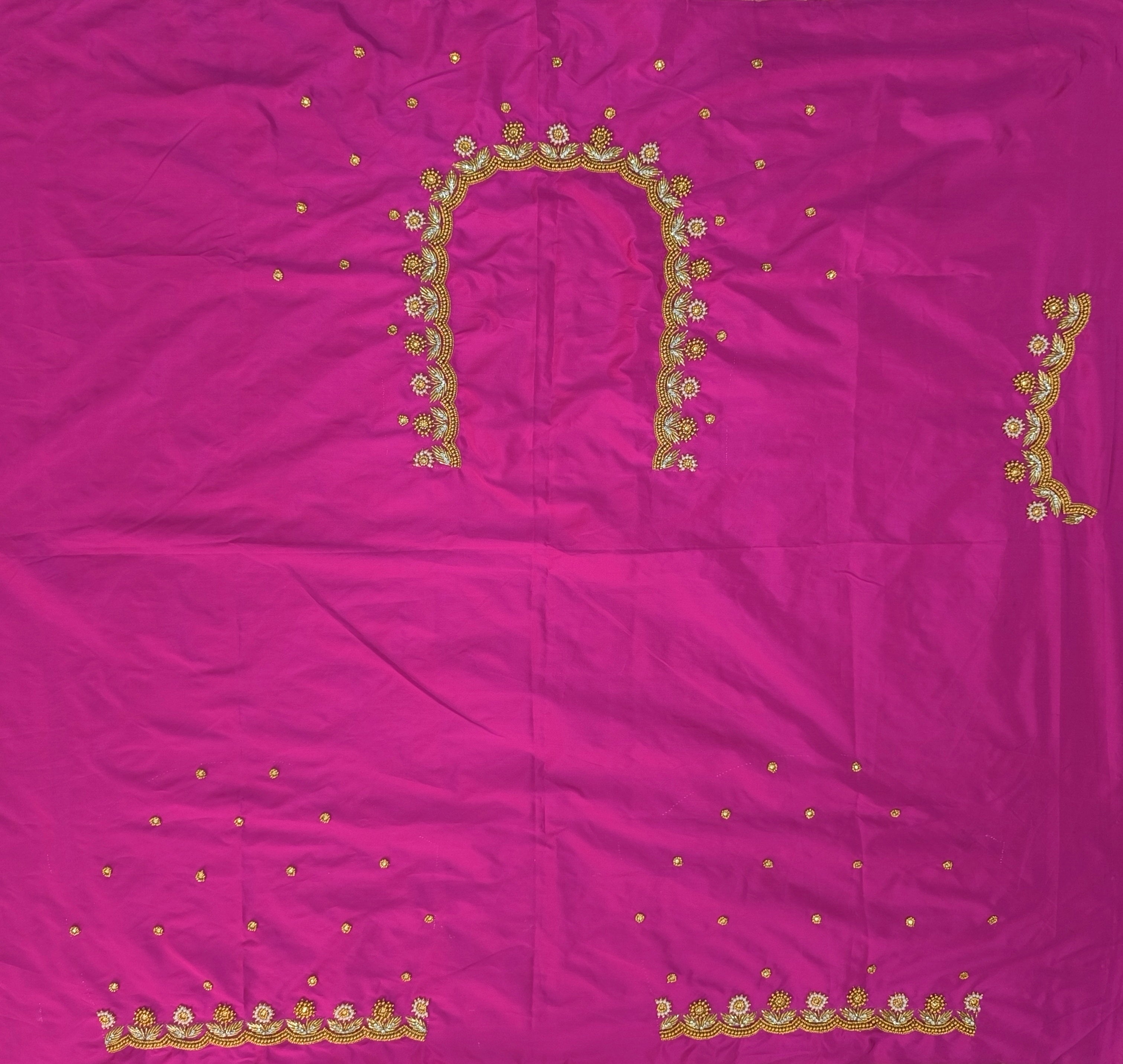 Pink Colour Maggam Work Blouse 1 MTR SILK  COTTON CLOTHPink ColorMaggam Work BlouseNECK DEEP 10 TO 11...